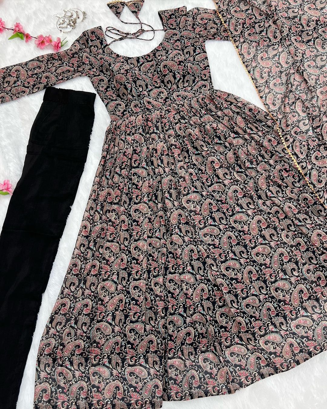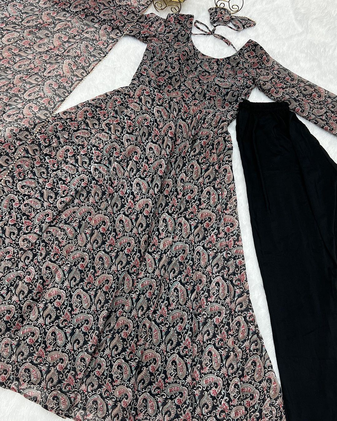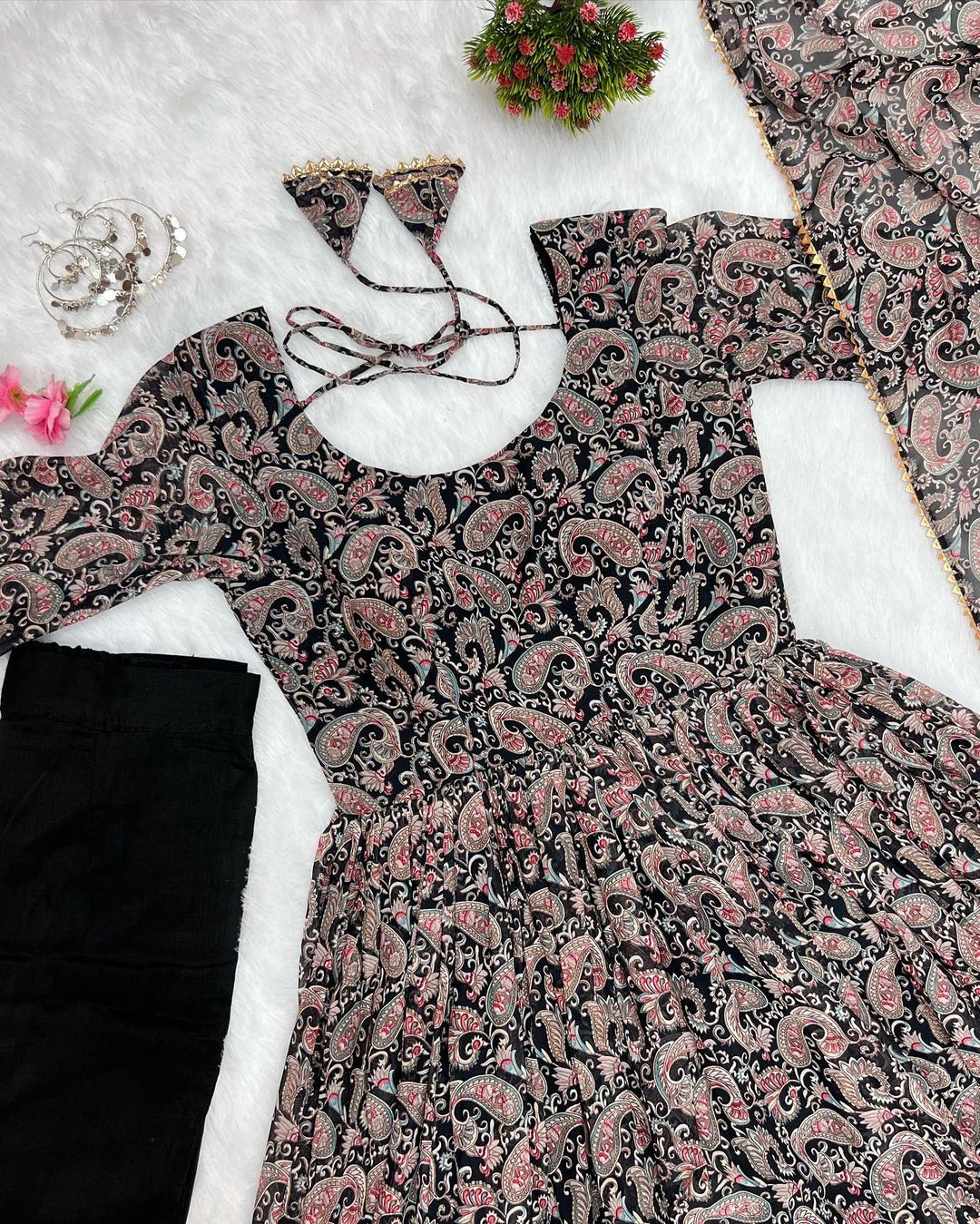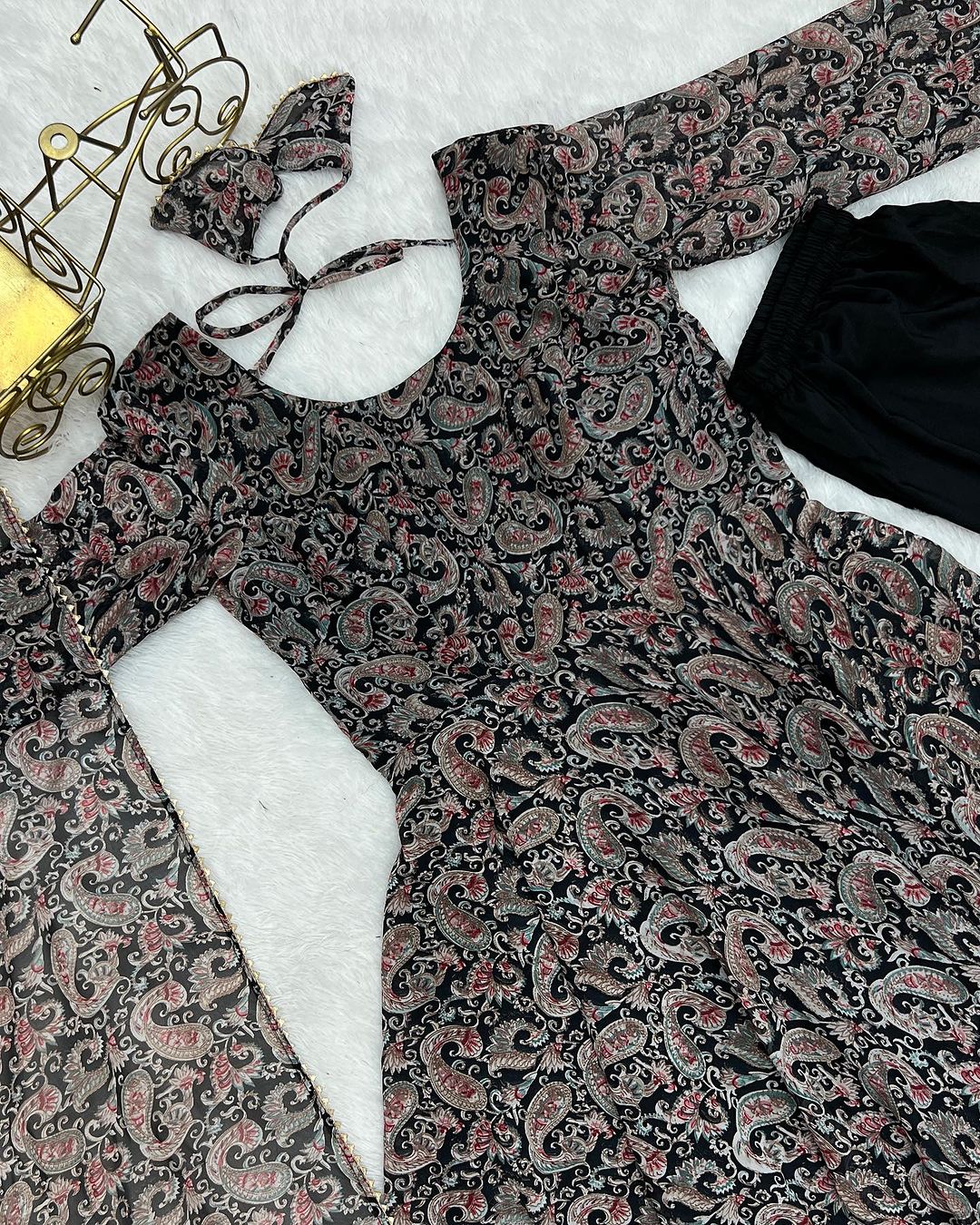 Dityaa Black Georgette Ruffle Flared Anarkali Suit Set