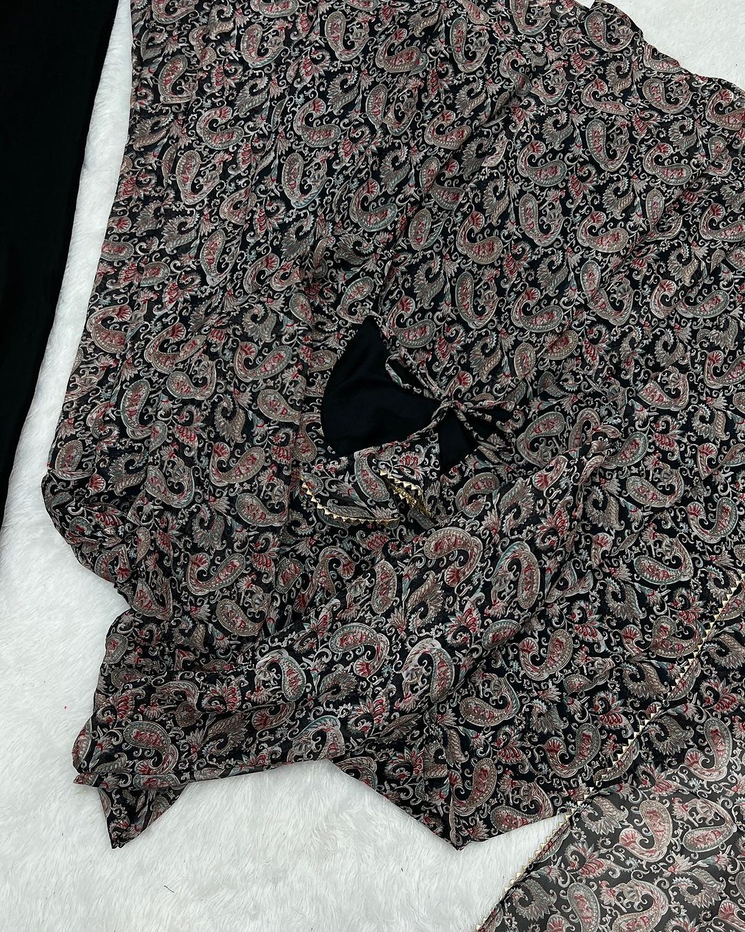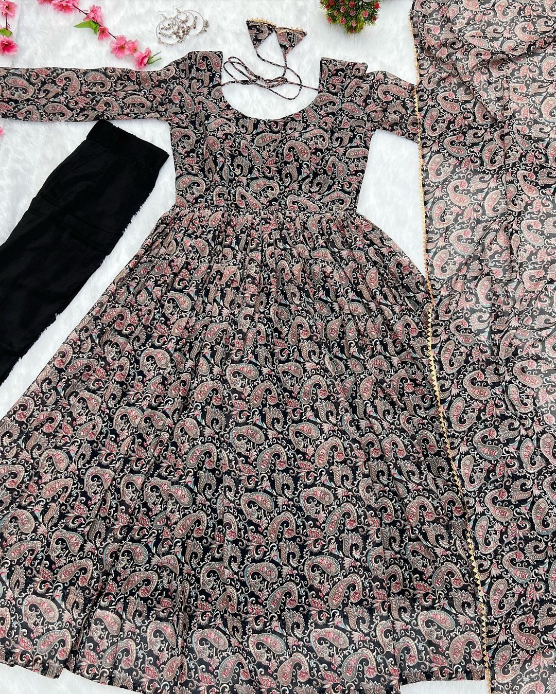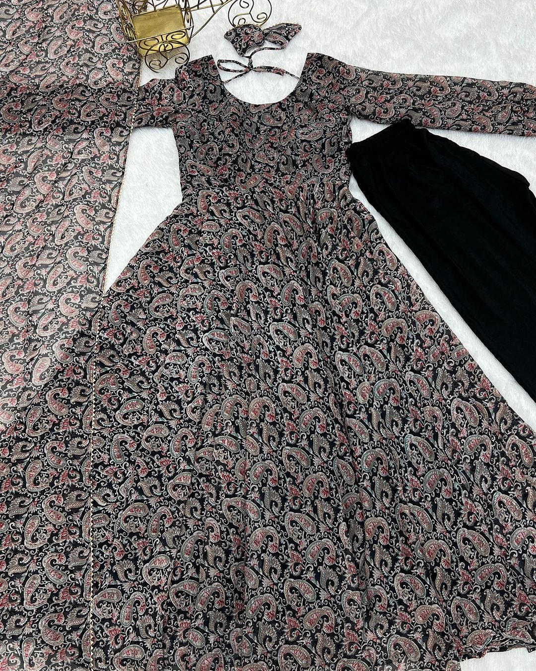 Dityaa Black Georgette Ruffle Flared Anarkali Suit Set