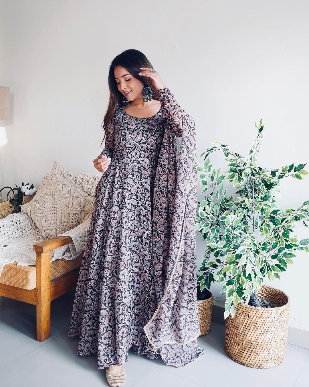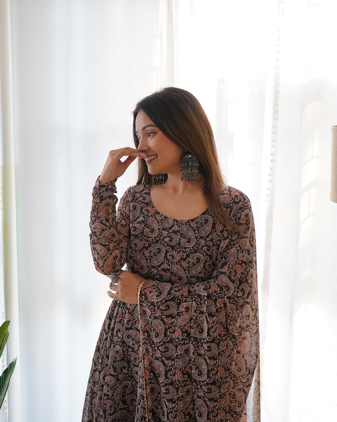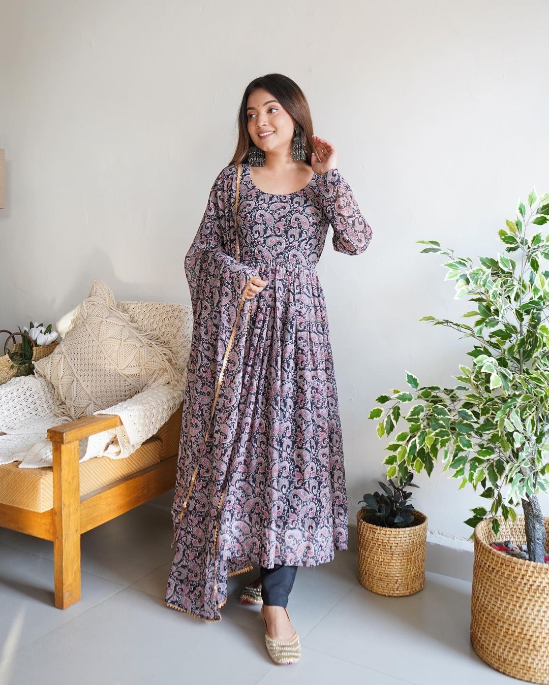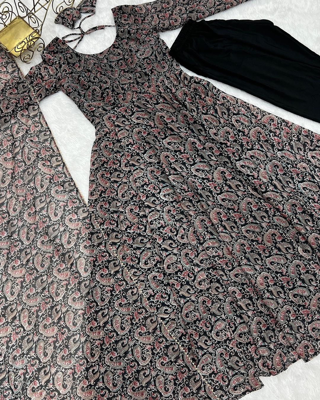 Dityaa Black Georgette Ruffle Flared Anarkali Suit Set