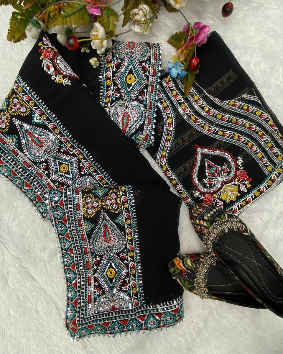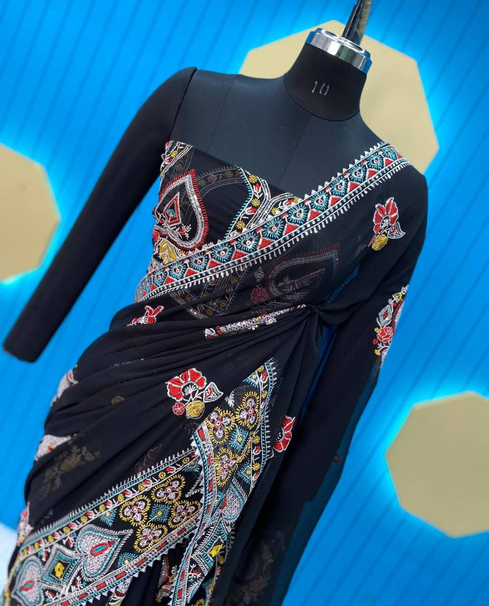 Tejasswi Prakash Black Georgette Embroidered Saree