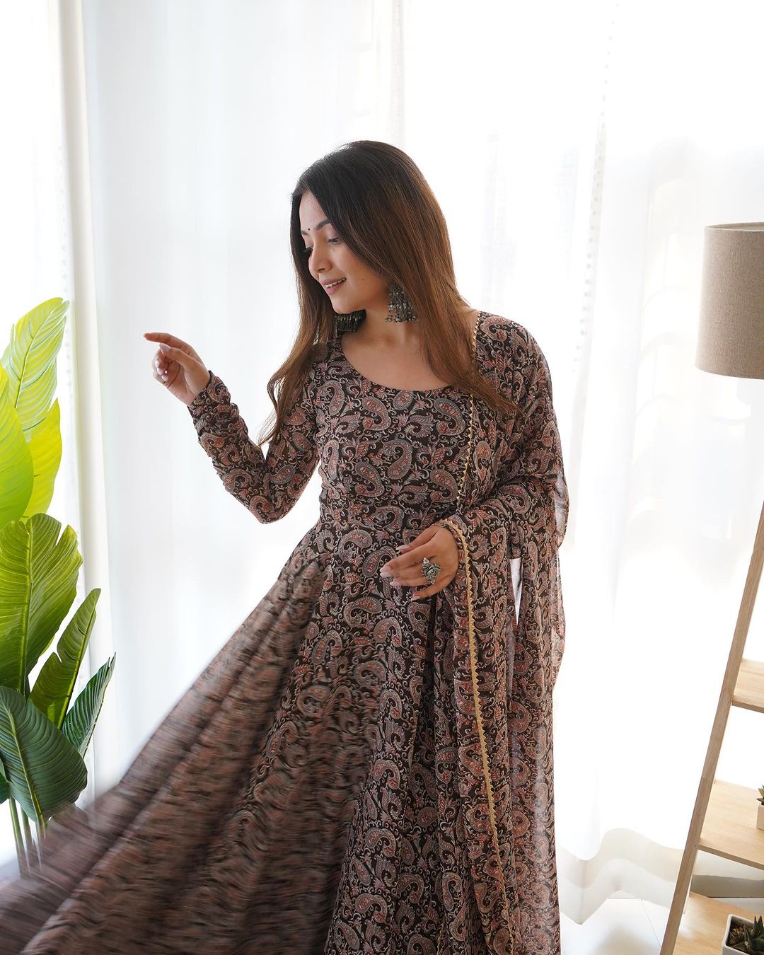 Hridaya Black Georgette Anarkali Gown Suit Set