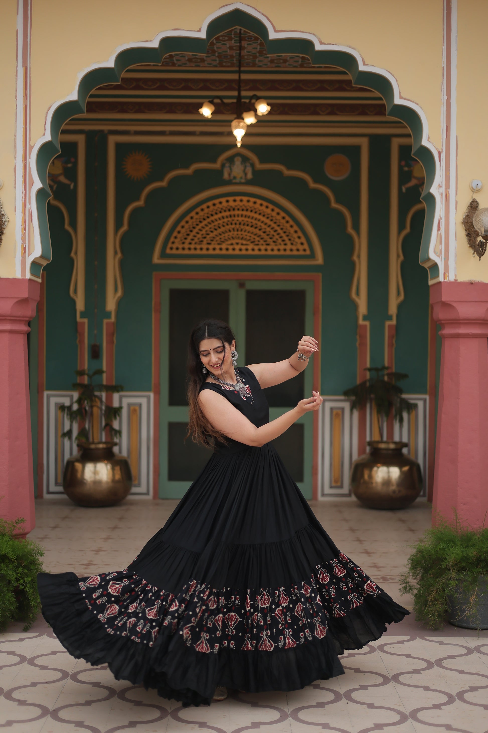 Reya Black Rayon Printed Navratri Lehanga Choli