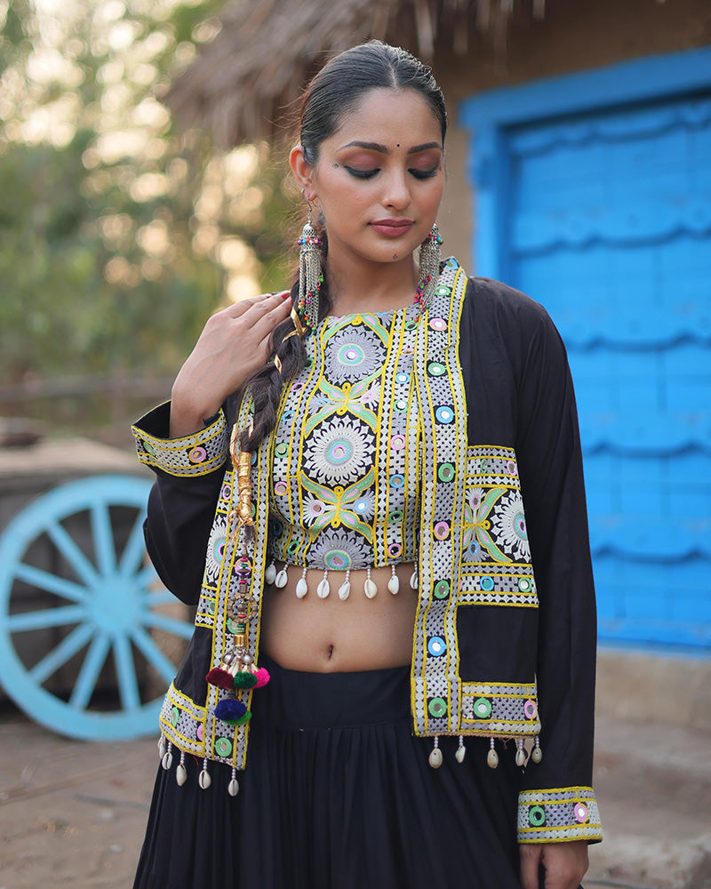 Sankita Black Rayon Gamthi Work Navratri Gown
