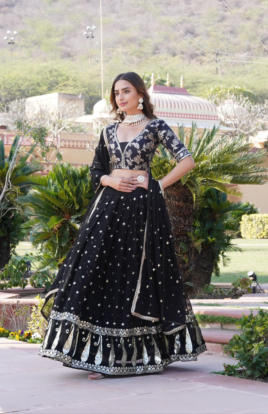 A lehenga choli is synonymous with grand festivities. Whether it's a wedding lehenga, bridal saree, or an embroidered lehenga, these outfits bring a royal touch to any occasion. Choose from silk lehengas, net lehengas, or party wear lehengas to make a lasting impression.