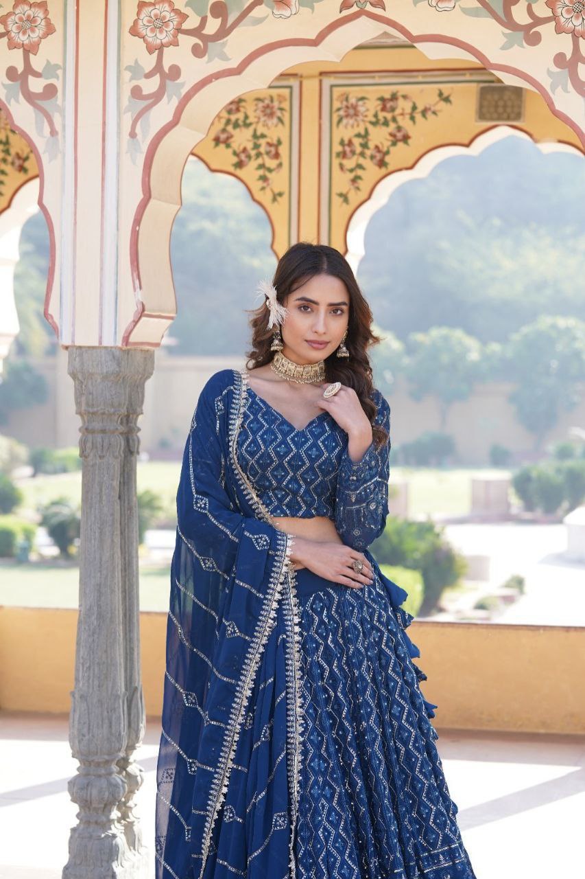 Unleash your inner diva with the Shimmering Saga: Sequin Splendor Lehenga. Featuring eye-catching sequin detailing, this lehenga will add a touch of glamour to any occasion. Embrace your sparkle and shine with this stunning piece. (Sparkle on, ladies! ????)