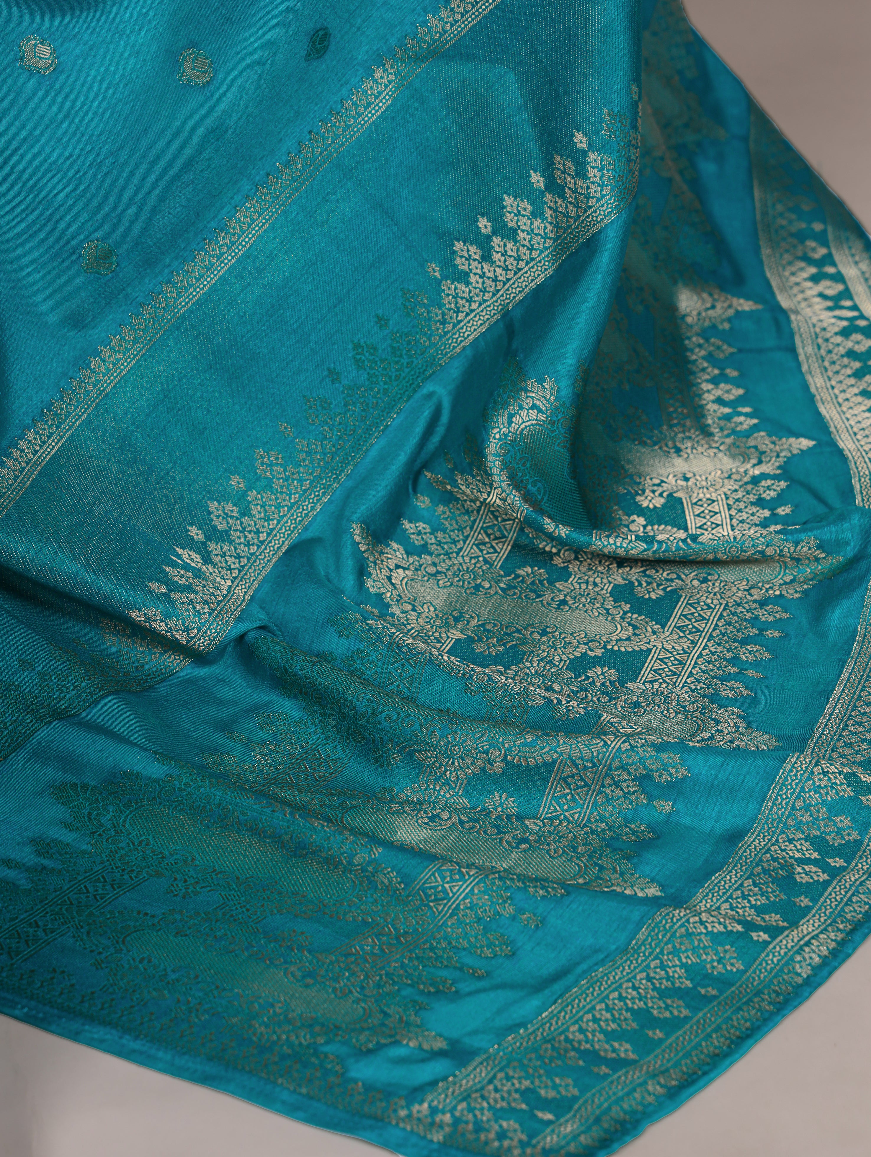 Teal Blue Color Roop Silk Zari Weaving Saree with Unstitched Blouse