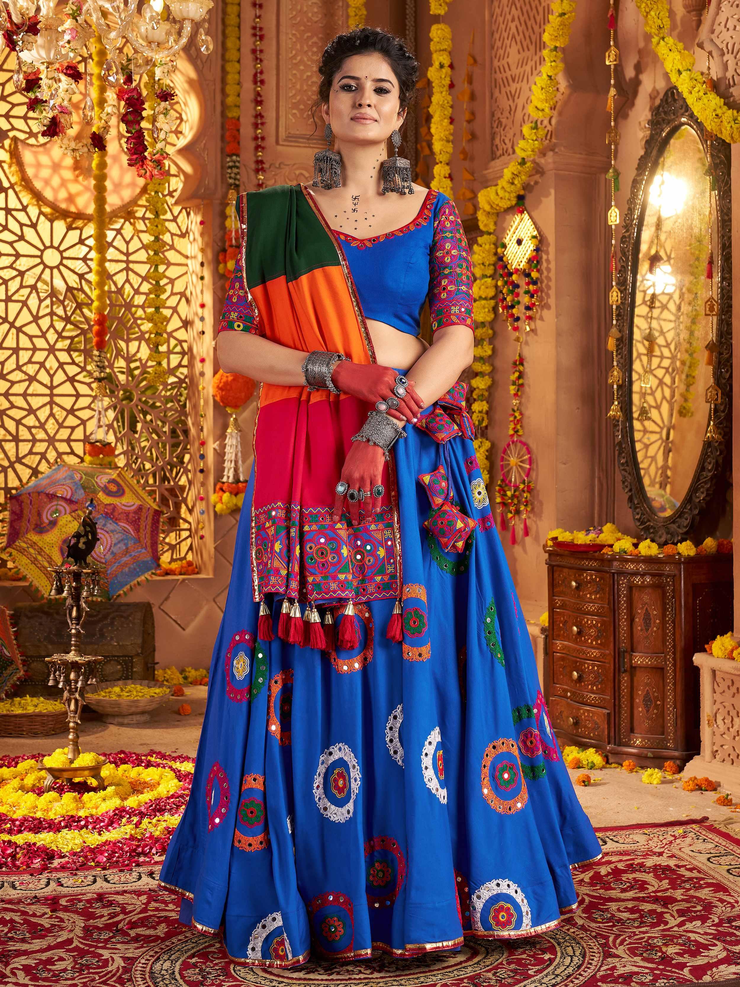 A lehenga choli is synonymous with grand festivities. Whether it's a wedding lehenga, bridal saree, or an embroidered lehenga, these outfits bring a royal touch to any occasion. Choose from silk lehengas, net lehengas, or party wear lehengas to make a lasting impression.