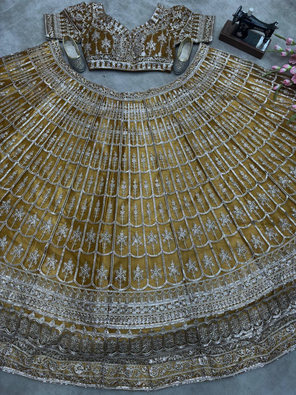 Brown Net Sequins Embroidered Designer Lehenga Choli with Dupatta