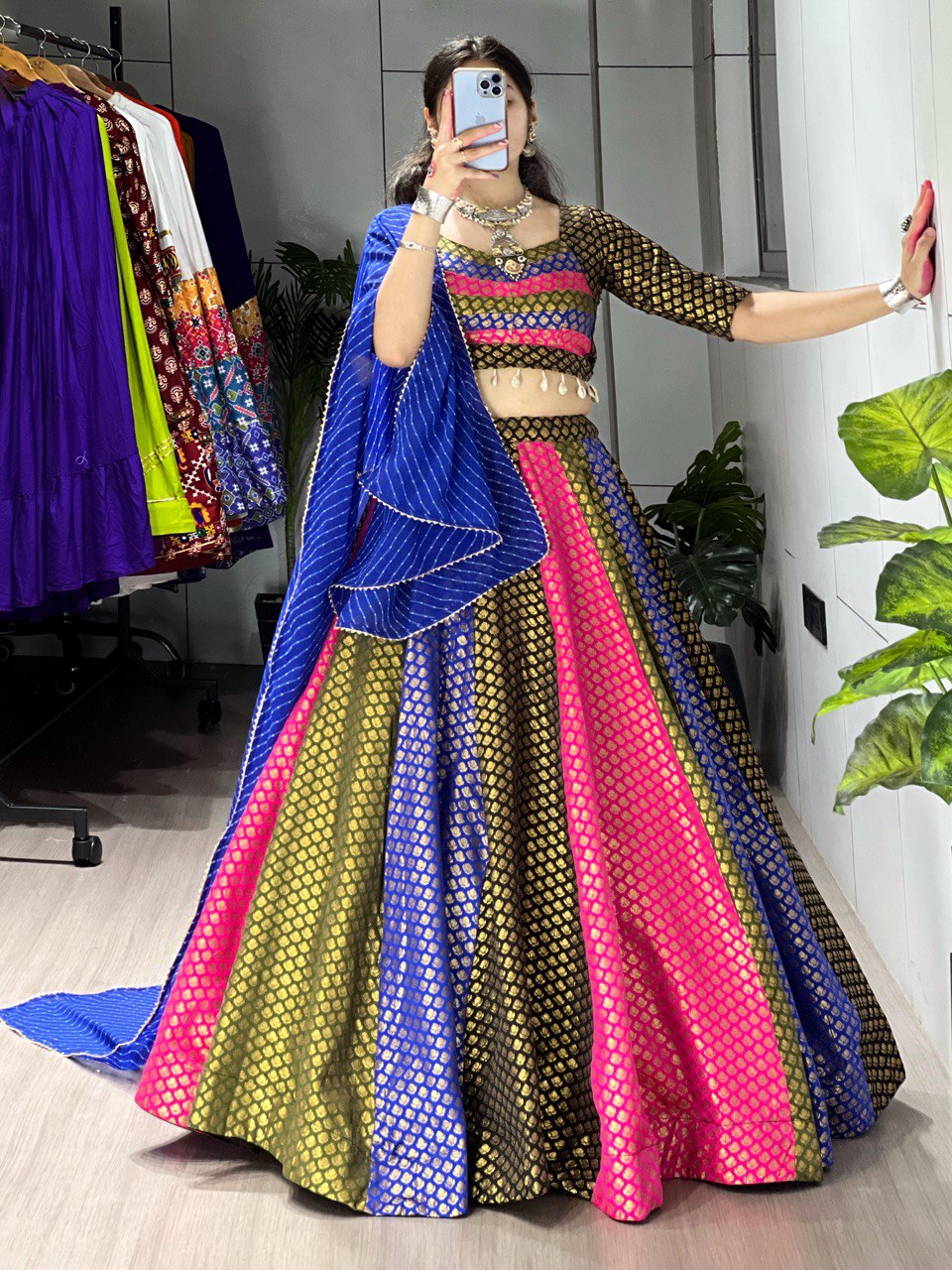 A lehenga choli is synonymous with grand festivities. Whether it's a wedding lehenga, bridal saree, or an embroidered lehenga, these outfits bring a royal touch to any occasion. Choose from silk lehengas, net lehengas, or party wear lehengas to make a lasting impression.