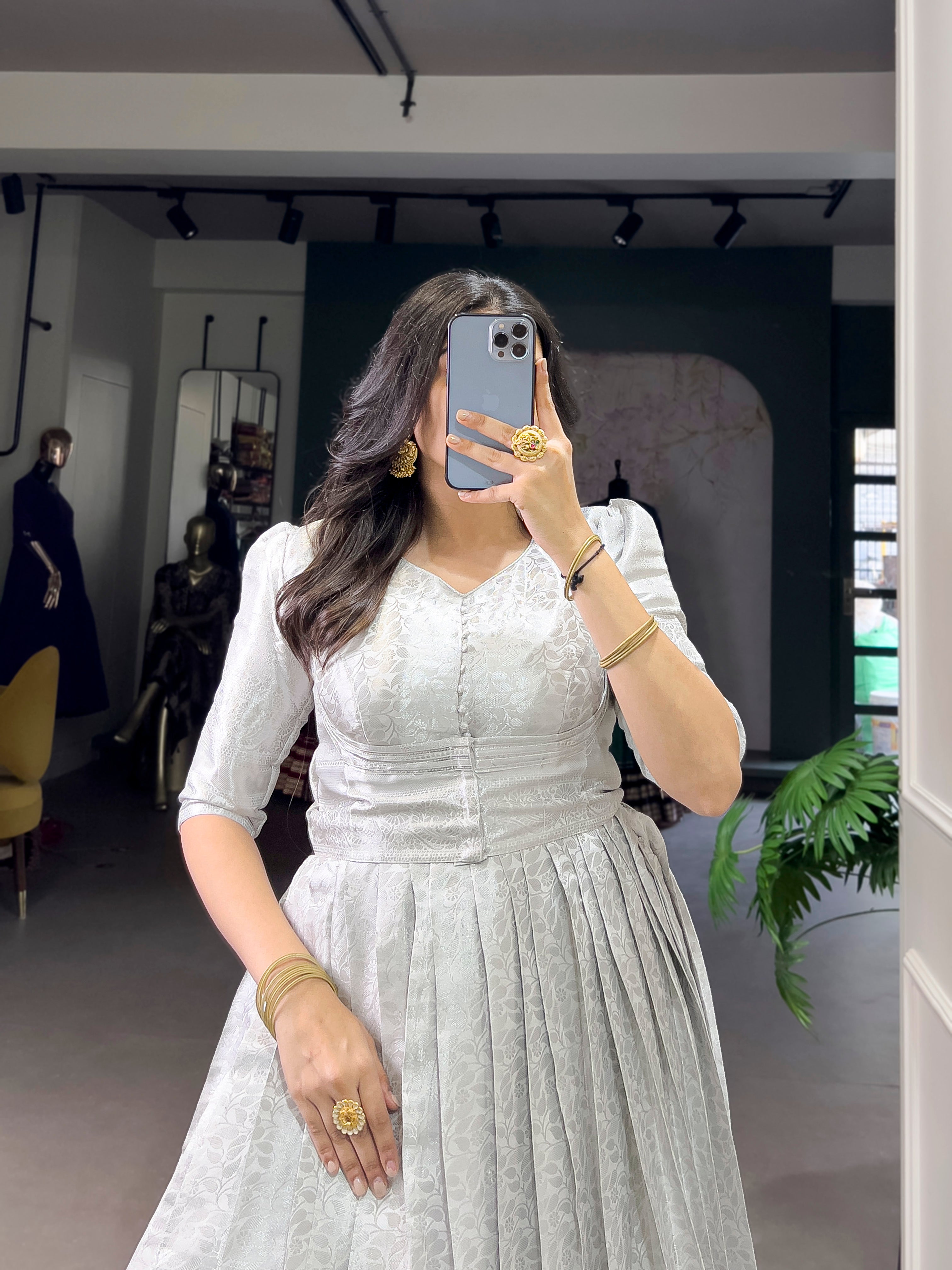 Grey Color Kanjivaram Zari Weaving Work Gown with Lace Touch-Up Koti