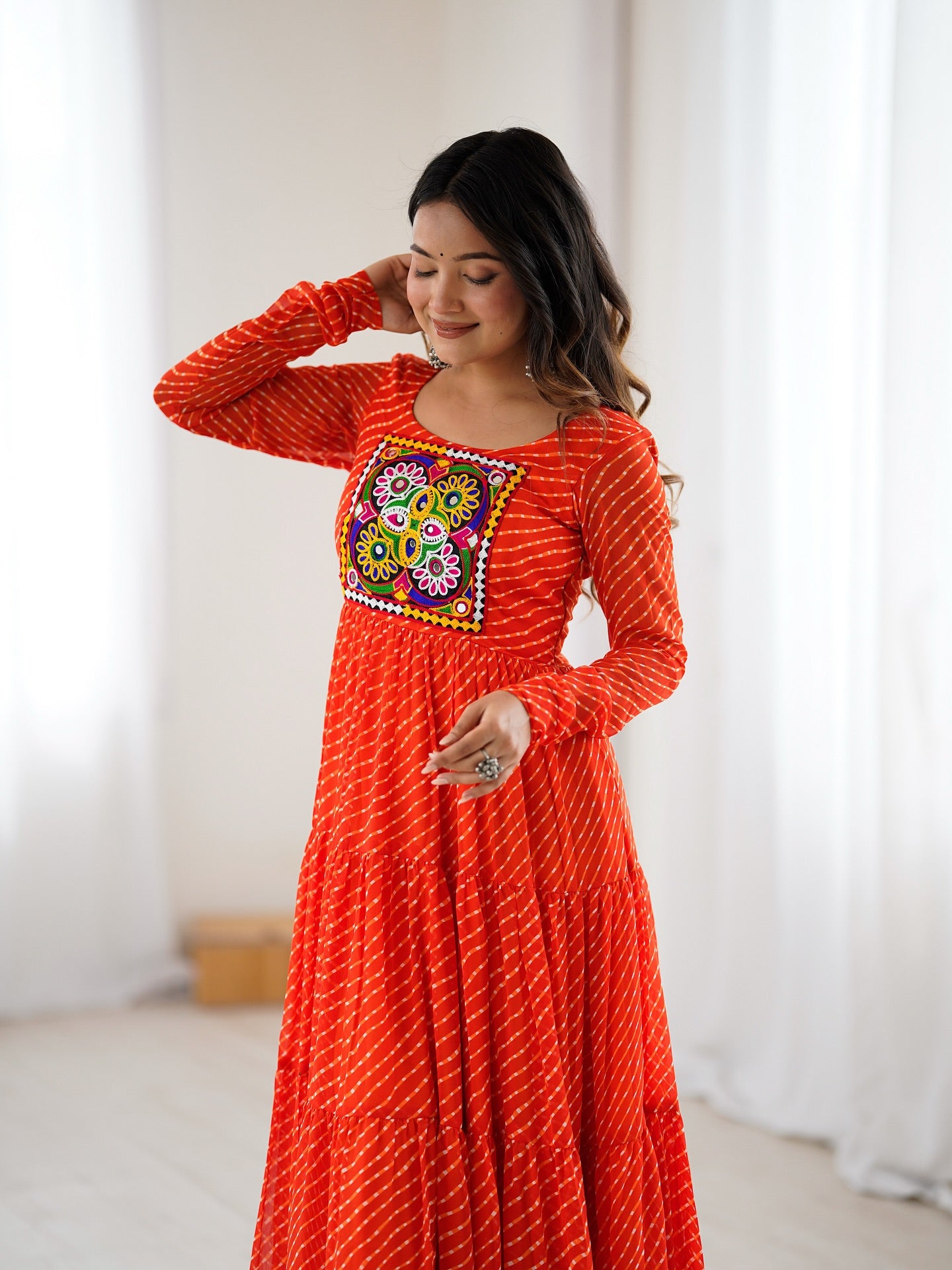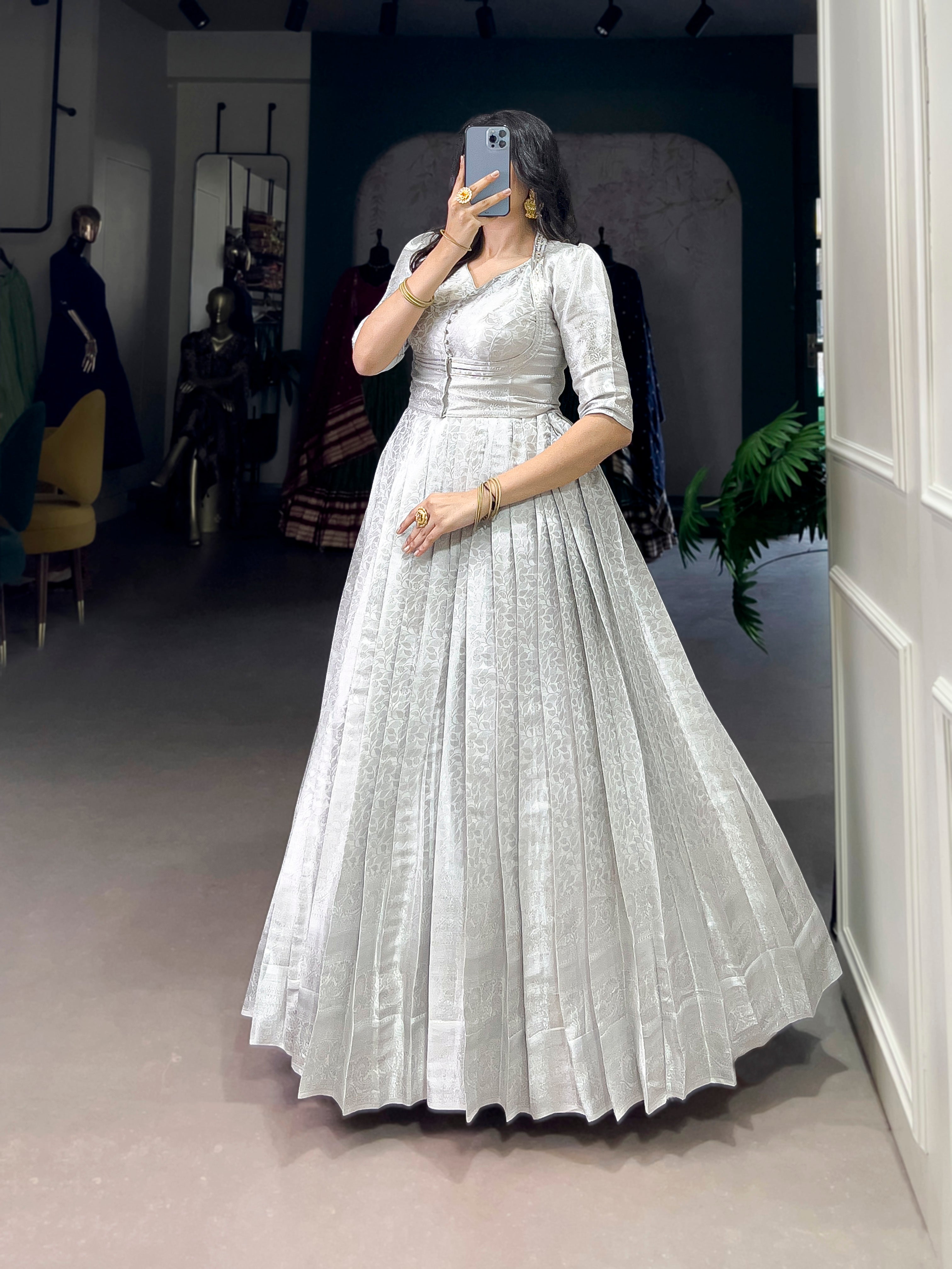 • Mix & Match – Combine ethnic gowns with contemporary jackets or add a belt for a modern touch.