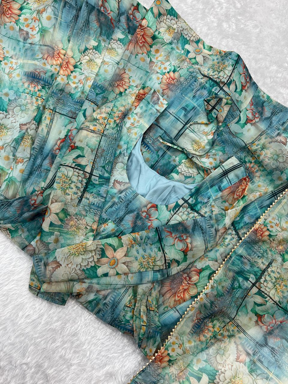 Discover the luxurious blend of style and comfort with our Harmonious Green Soft Organza Silk Printed Suit Set. Made with the finest organza silk, this suit set features a stunning printed design that adds a touch of elegance to your wardrobe. Perfect for any occasion, feel confident and stylish in this expertly crafted suit set.
