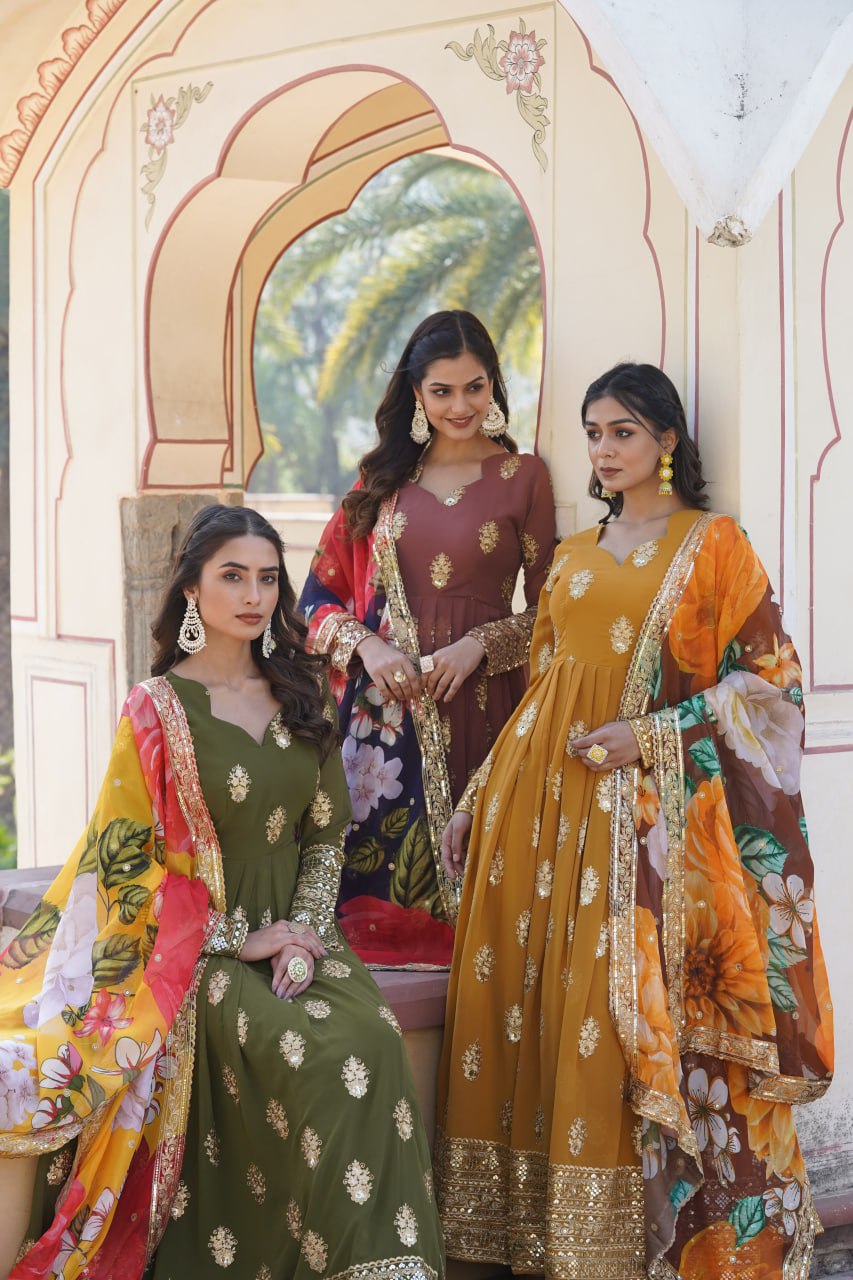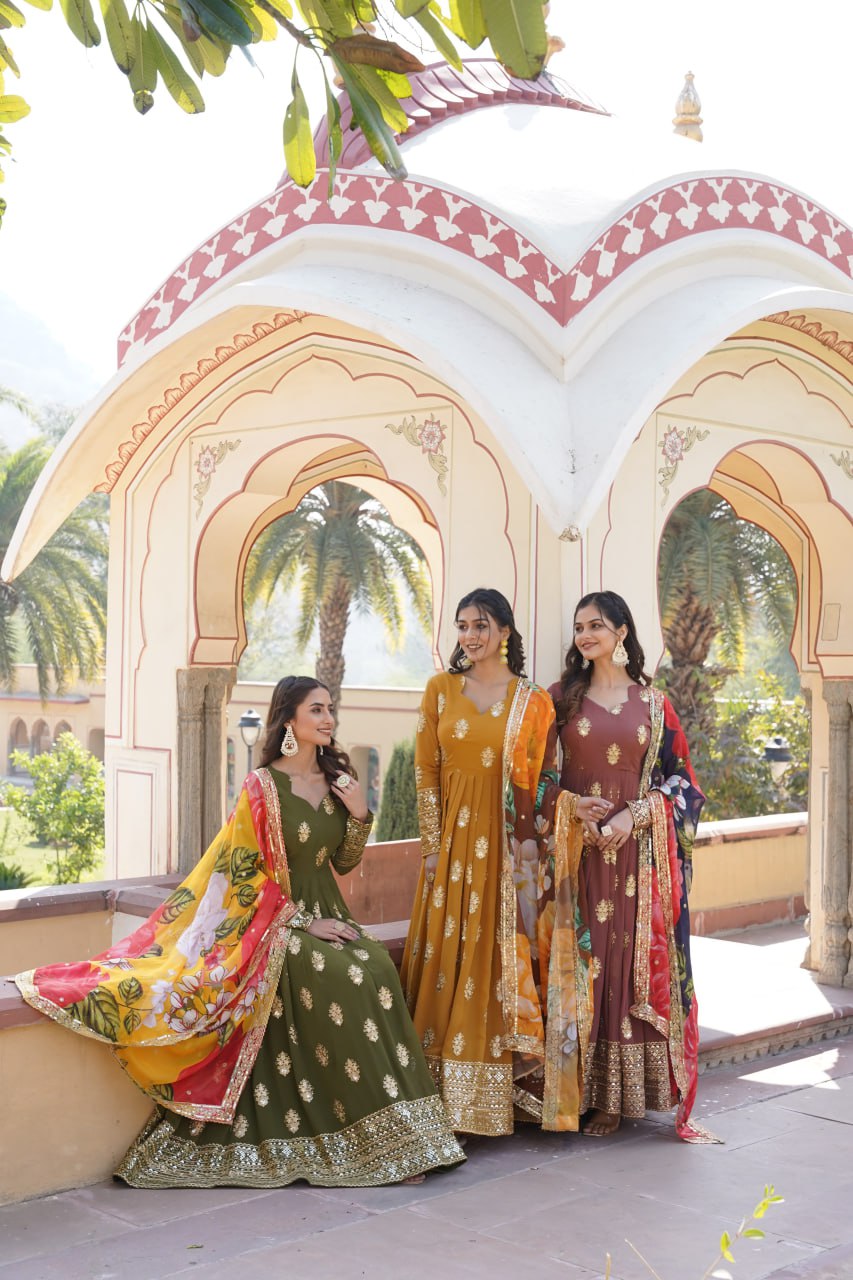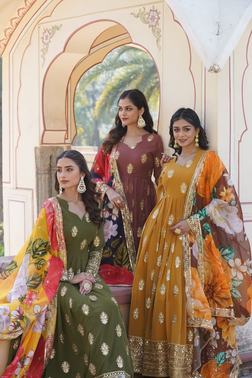 Padmini Georgette Brown Embroidery Anarkali Gown Set