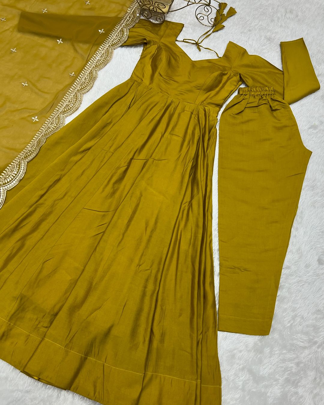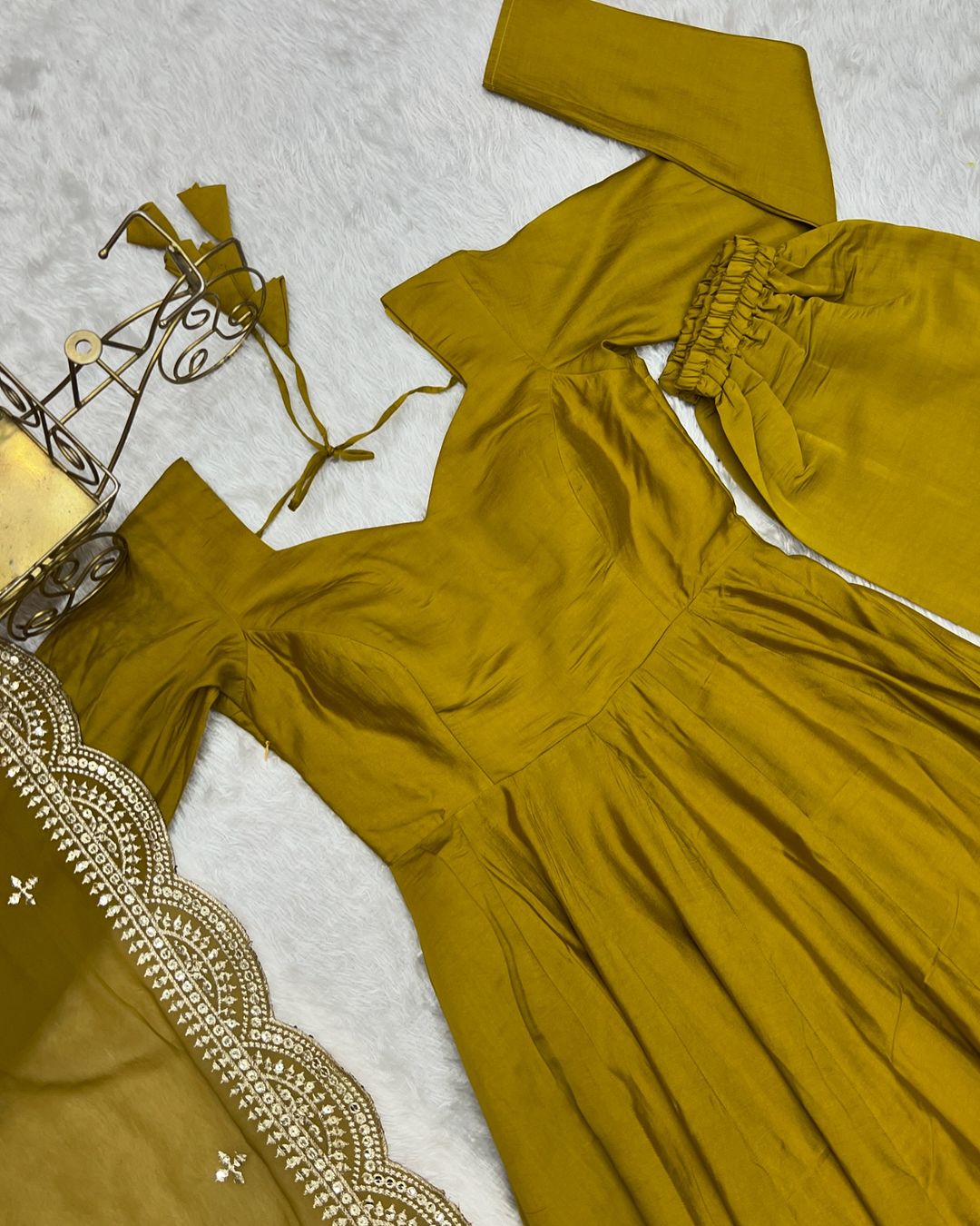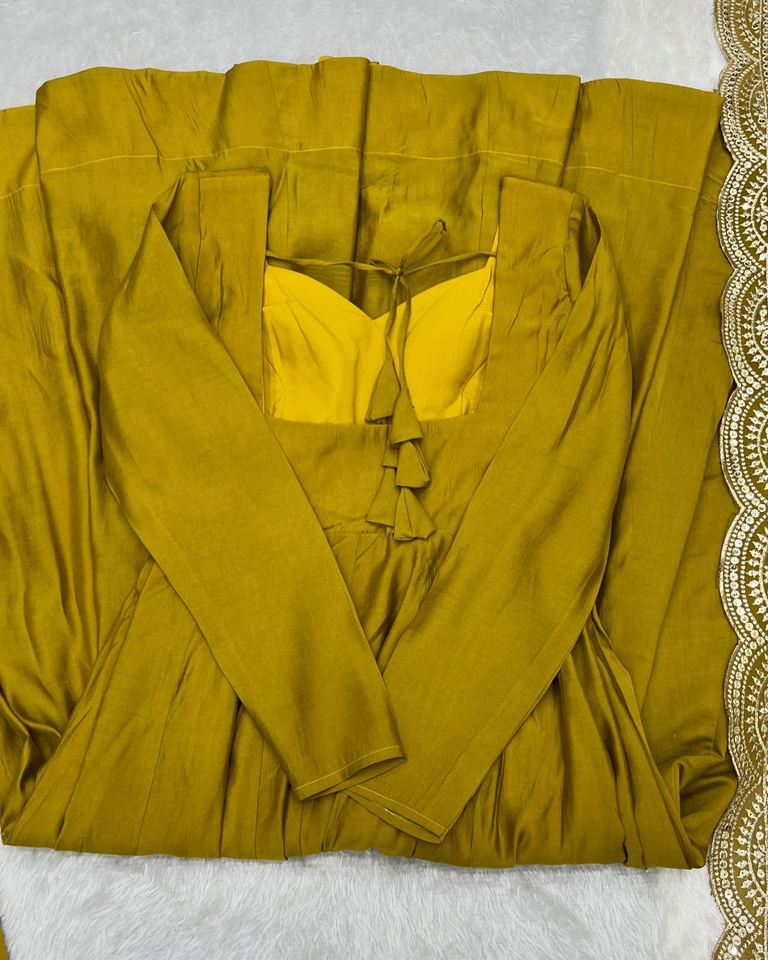 This luxurious Prema Yellow Chanderi Silk Anarkali Suit Set is perfect for any special occasion. The Chanderi silk fabric offers a rich, elegant look while the anarkali style adds a touch of traditional charm. Elevate your style and make a statement with this exquisite suit set