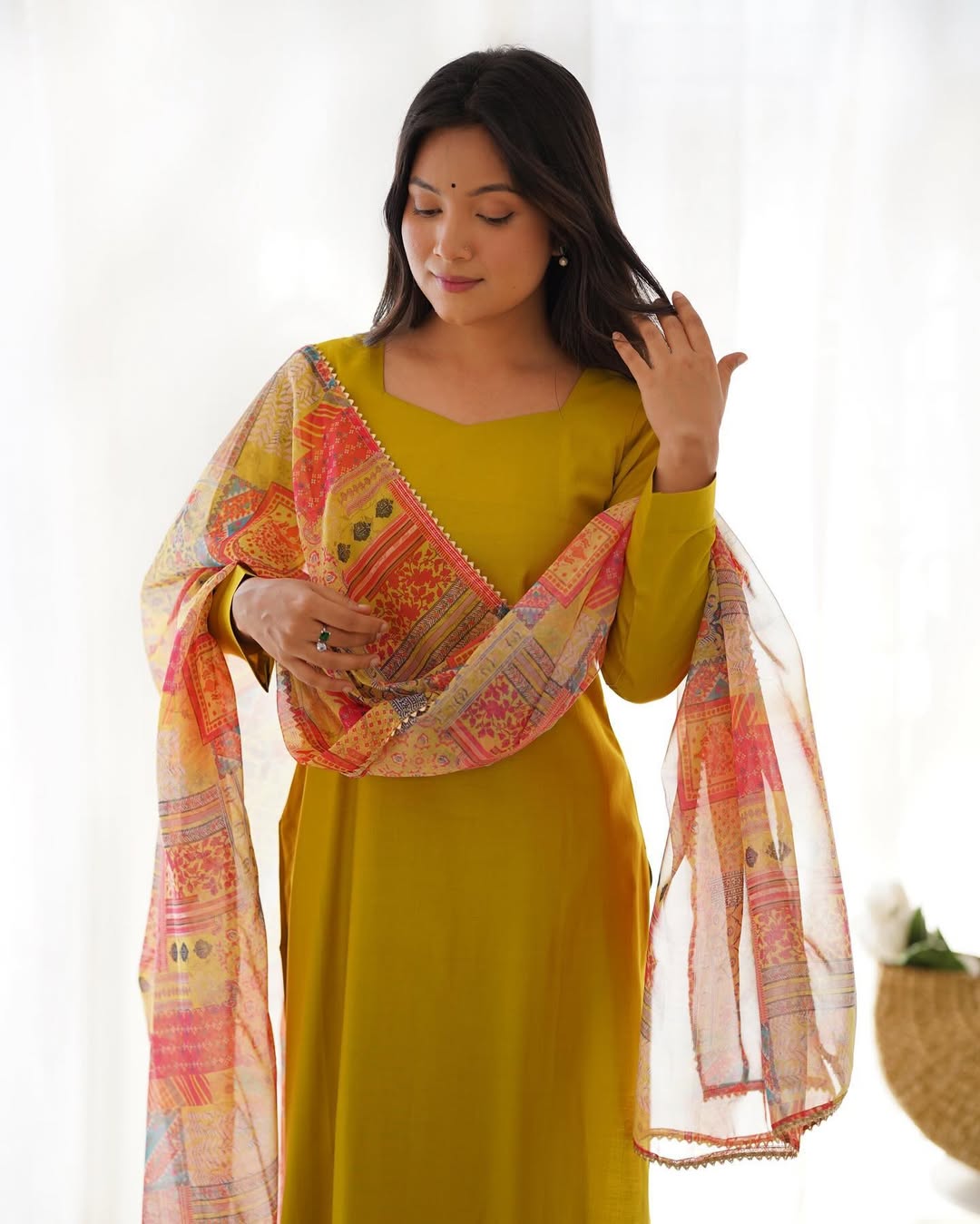 Elevate your style with our Vedanya Viscose Yellow Straight Kurti Set. Made of high-quality viscose, this set offers both comfort and style. The straight cut kurti is perfect for any occasion, giving you a chic and sophisticated look. Add this versatile set to your wardrobe today!