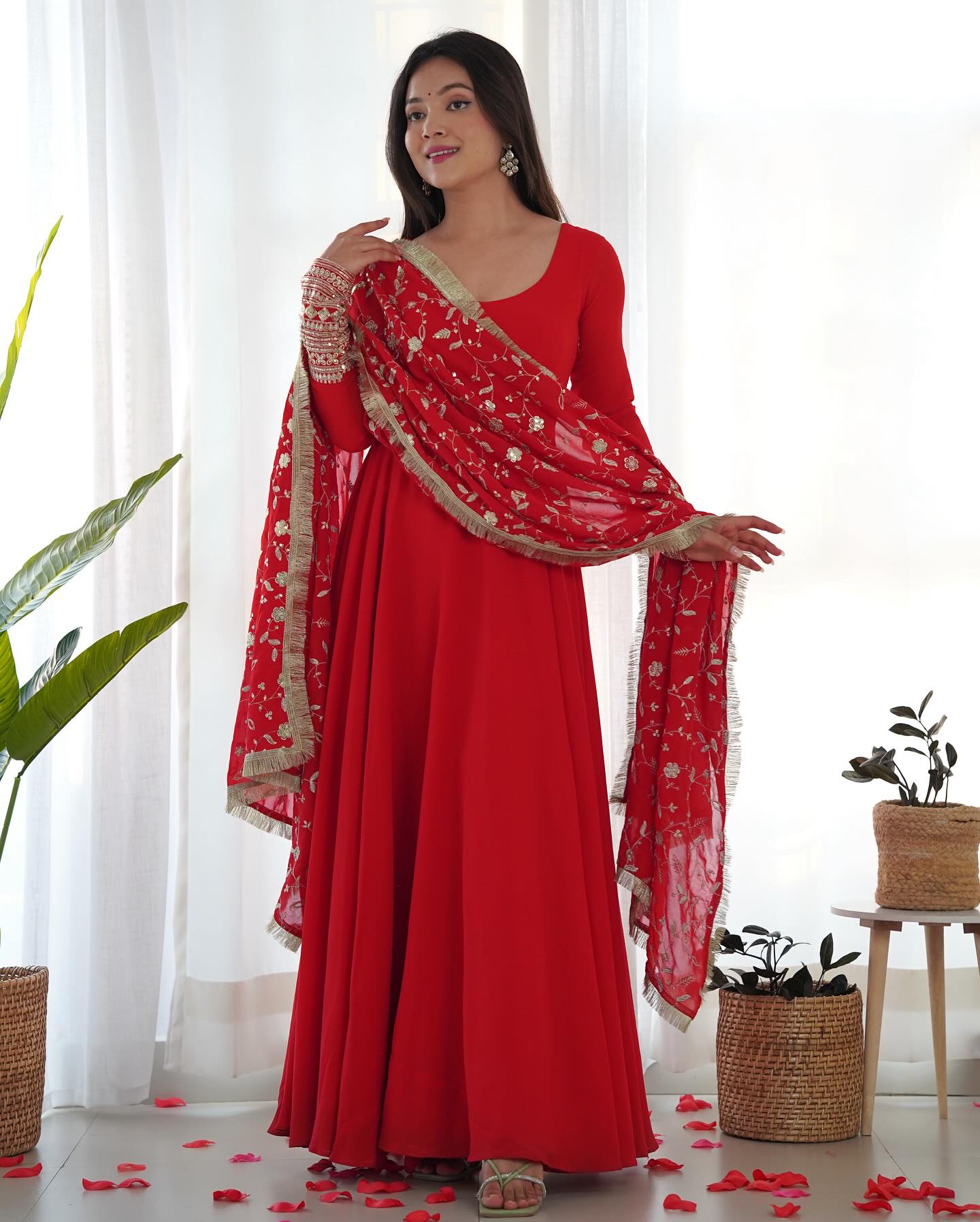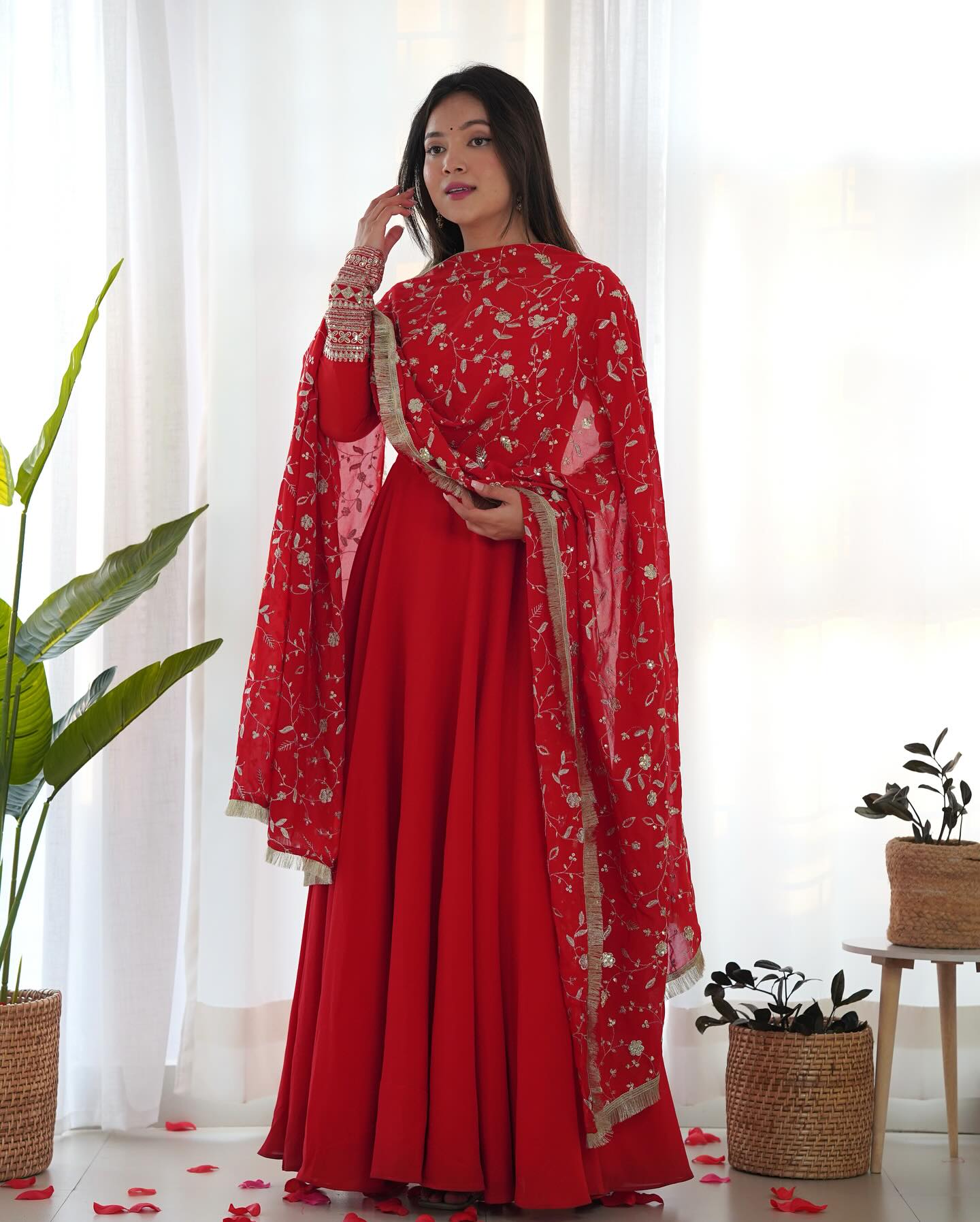 Crafted with intricate sequin embroidery, this Lavish Red Anarkali Flared Kurti Set exudes luxury and elegance. Its flowing silhouette and rich color make it perfect for special occasions. Made with high-quality materials, this set offers both comfort and style, making it a must-have for any fashion-forward individual.