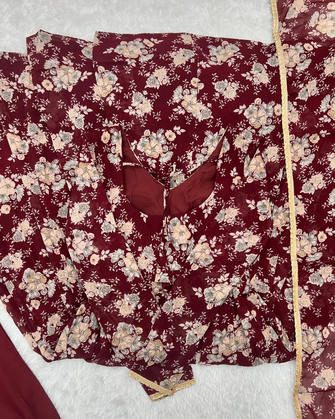Saisha Brown Georgette Flared Anarkali Suit Set