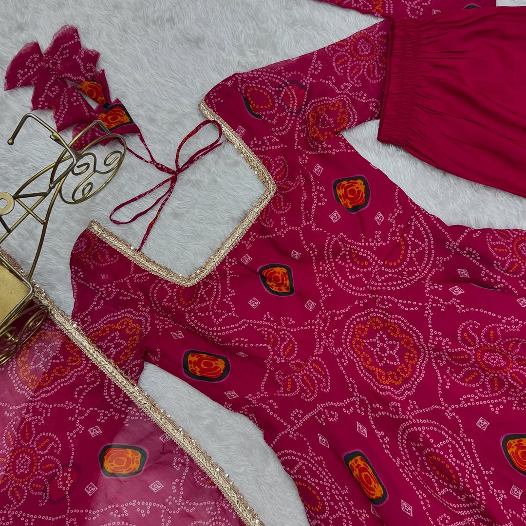 - Dupatta: Pure Soft Chiffon With Bandhej Print Border Lace Work