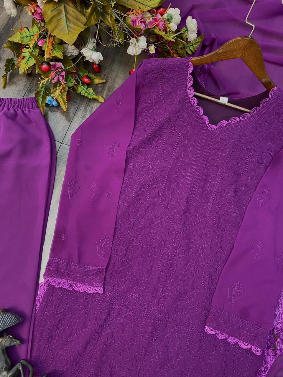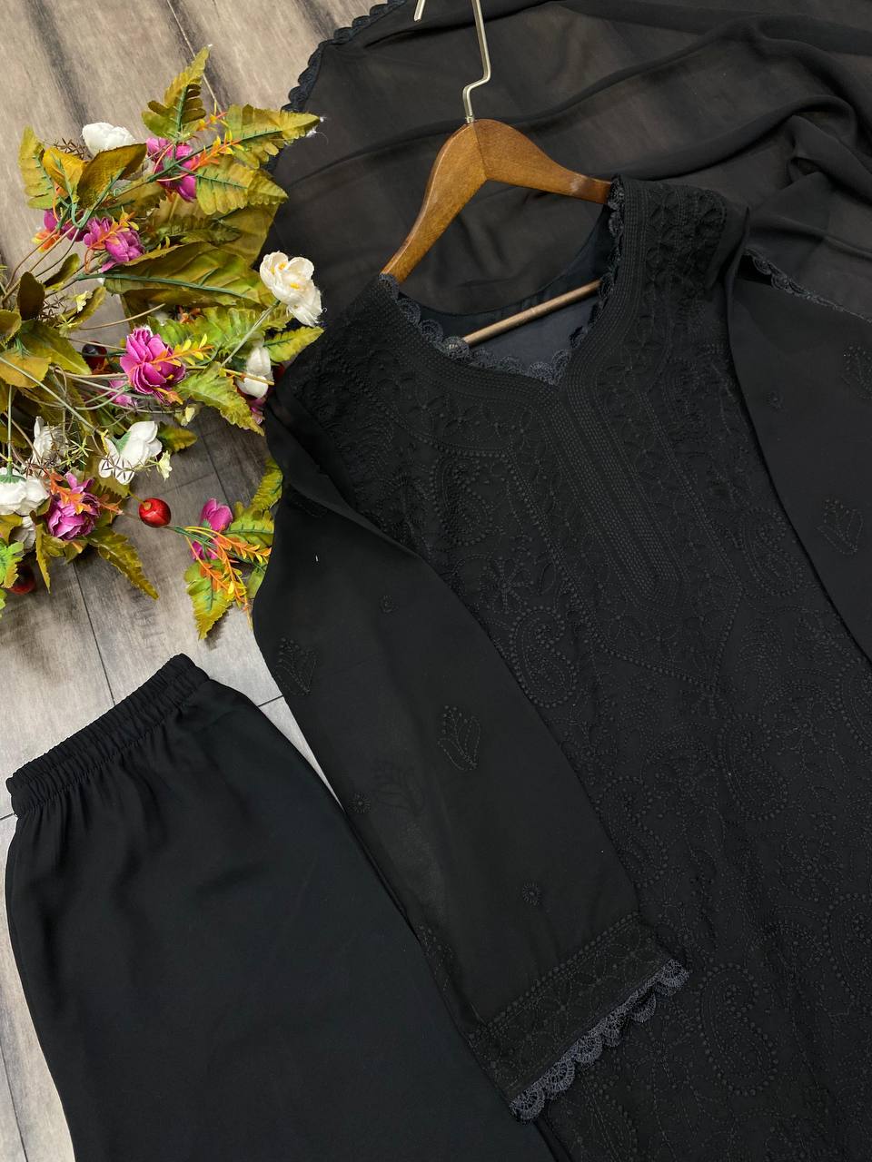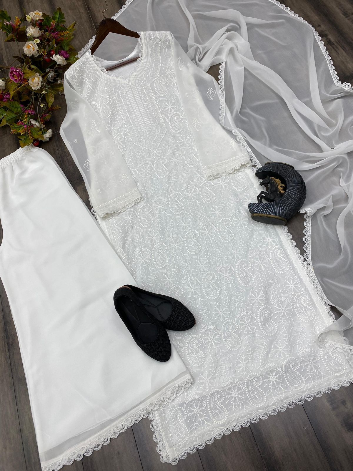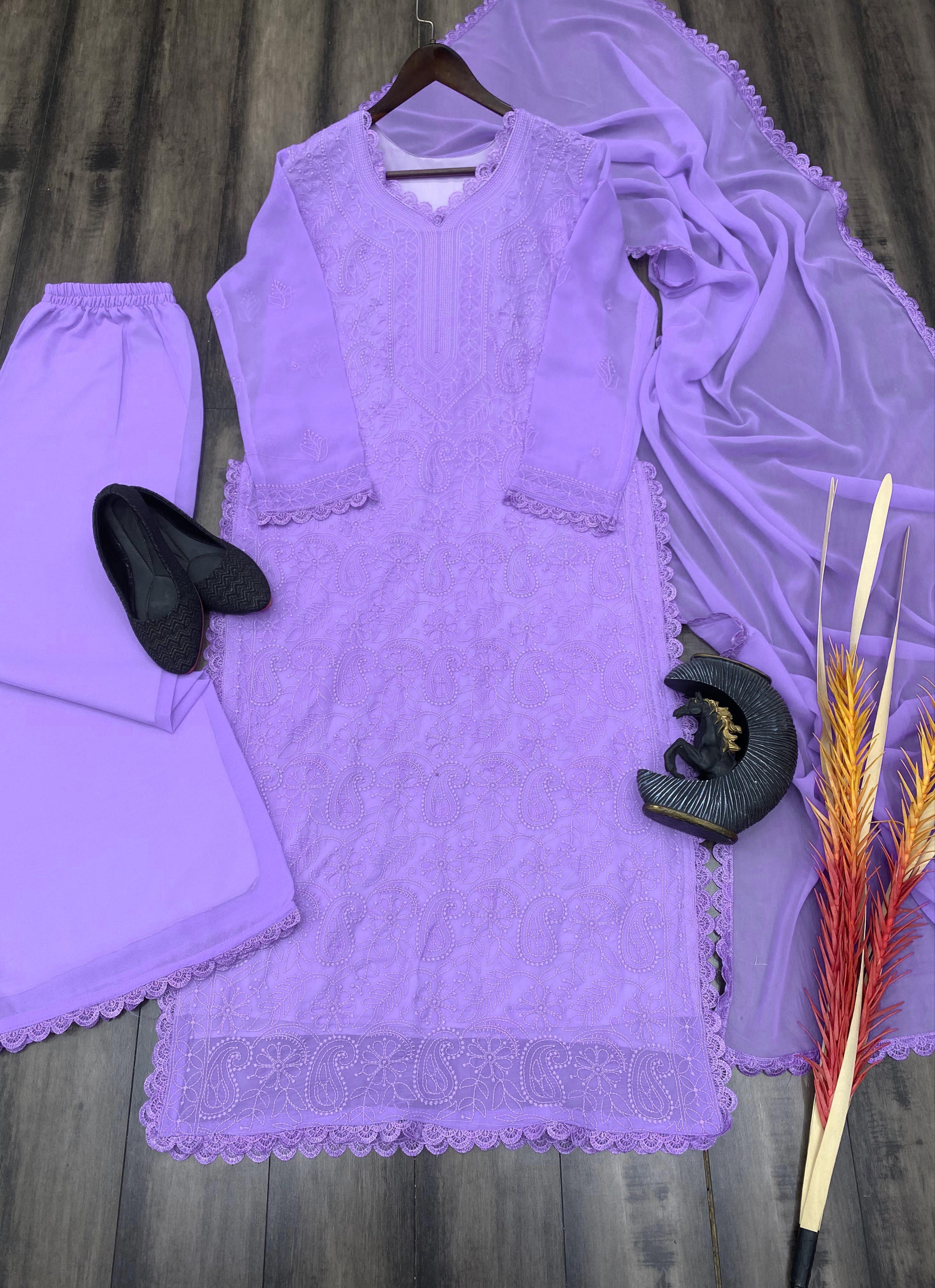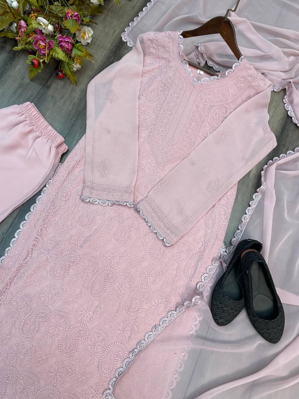 This exquisite Ramani Peach Georgette Chikankari Embroidery Kurti Set showcases intricate embroidery and is made of high-quality Georgette fabric, making it a must-have for any wardrobe.