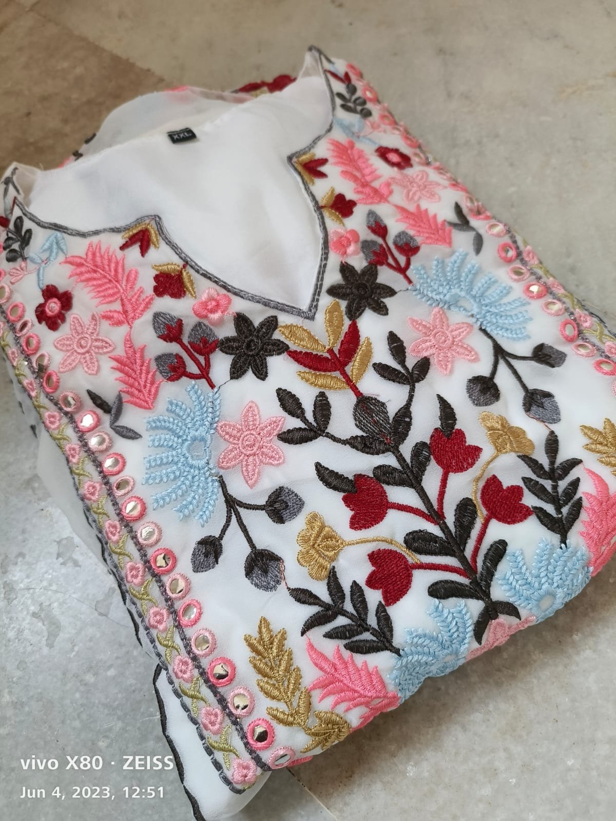 This Sandhya White Cotton Embroidered Pakistani Suit Set offers a delicate and elegant look with its intricate embroidery. Made of high-quality cotton, it ensures comfort and breathability. Elevate your style with this timeless piece that blends traditional Pakistani design with modern fashion. Perfect for any formal or festive occasion.