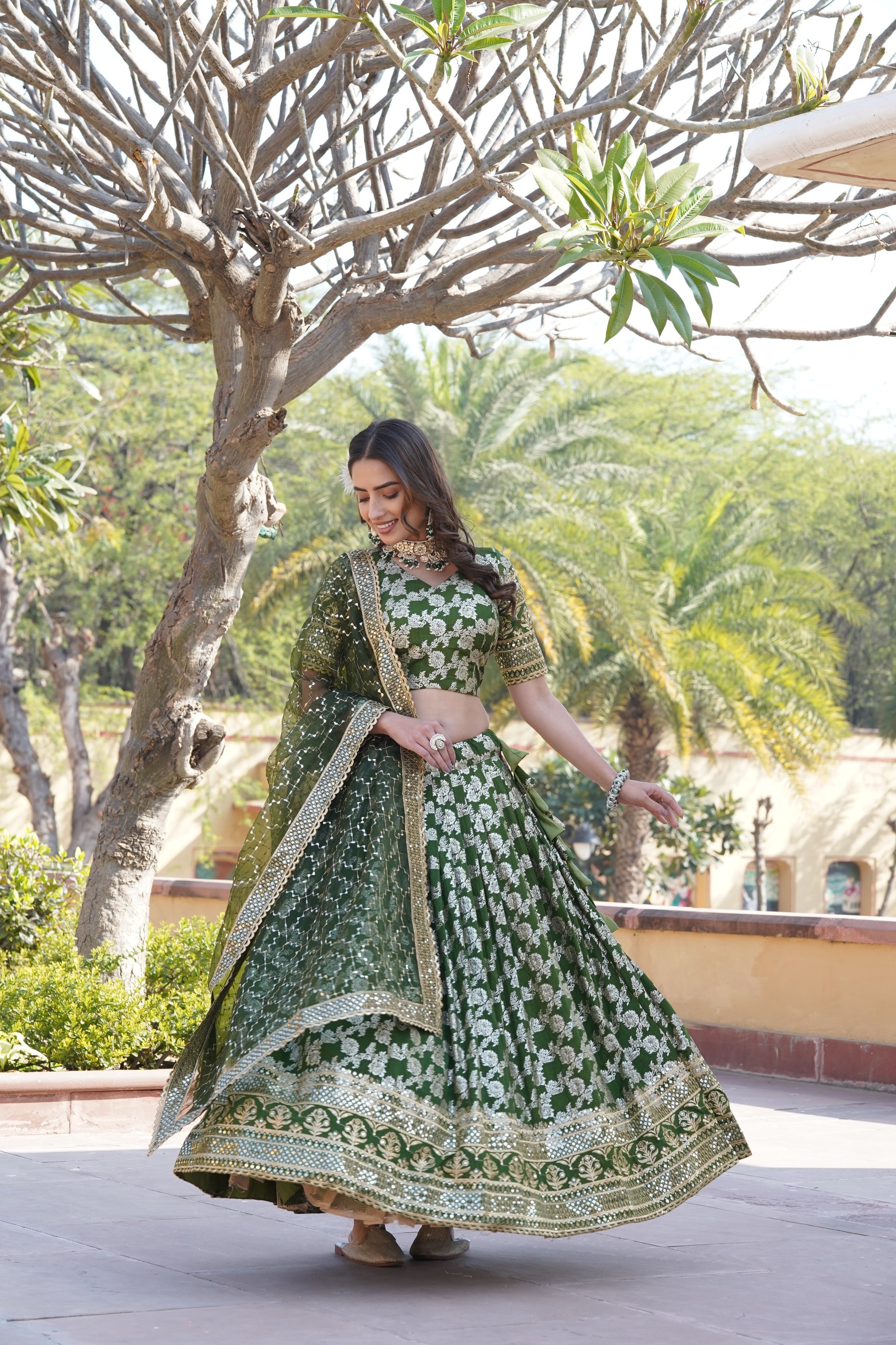 A lehenga choli is synonymous with grand festivities. Whether it's a wedding lehenga, bridal saree, or an embroidered lehenga, these outfits bring a royal touch to any occasion. Choose from silk lehengas, net lehengas, or party wear lehengas to make a lasting impression.