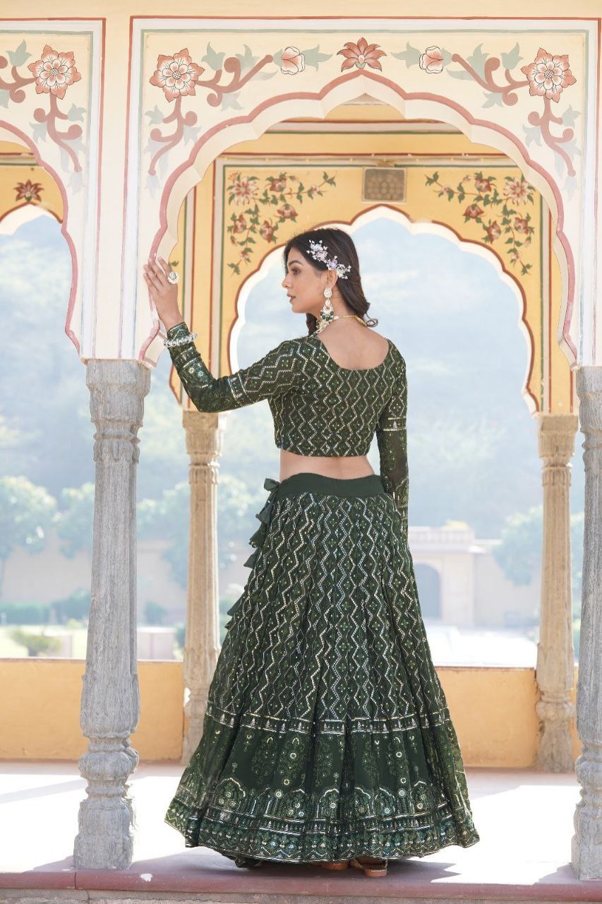 Unleash your inner diva with the Shimmering Saga: Sequin Splendor Lehenga. Featuring eye-catching sequin detailing, this lehenga will add a touch of glamour to any occasion. Embrace your sparkle and shine with this stunning piece. (Sparkle on, ladies! ????)
