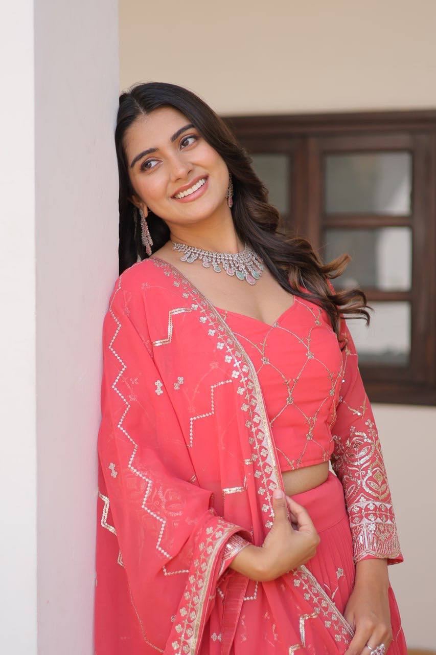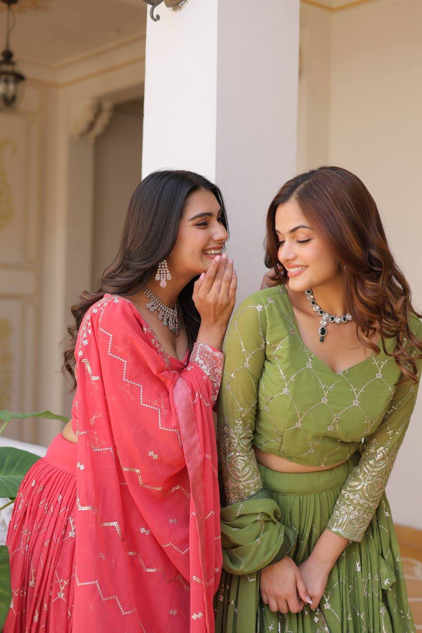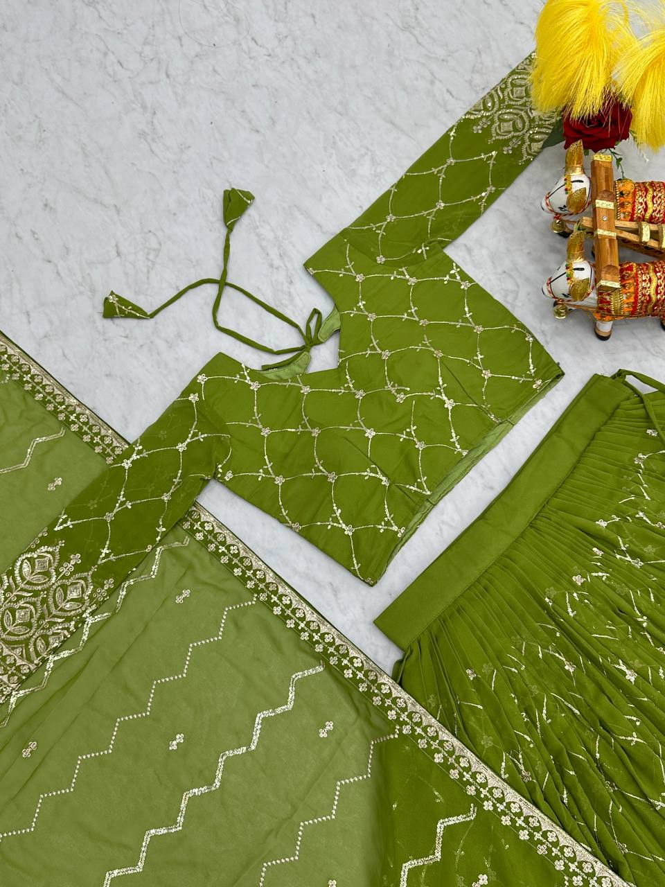 Take on the world fearlessly with the Kimaya Green Georgette Embroidered Lehanga Set! Made of high-quality georgette fabric and featuring intricate embroidery, this set is perfect for any daring adventure. Show off your bold and adventurous side with this stylish and stunning lehanga set!