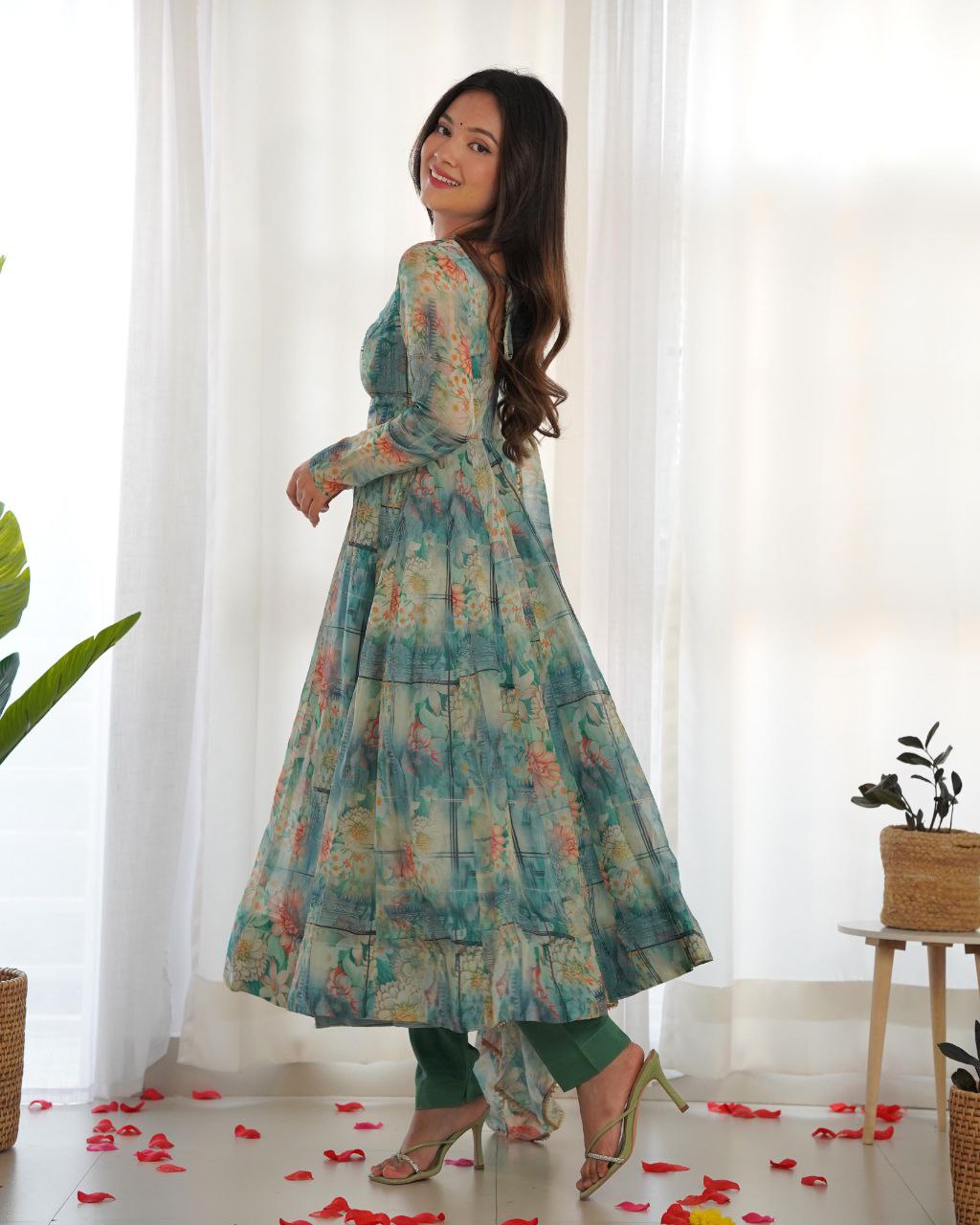 Discover the luxurious blend of style and comfort with our Harmonious Green Soft Organza Silk Printed Suit Set. Made with the finest organza silk, this suit set features a stunning printed design that adds a touch of elegance to your wardrobe. Perfect for any occasion, feel confident and stylish in this expertly crafted suit set.