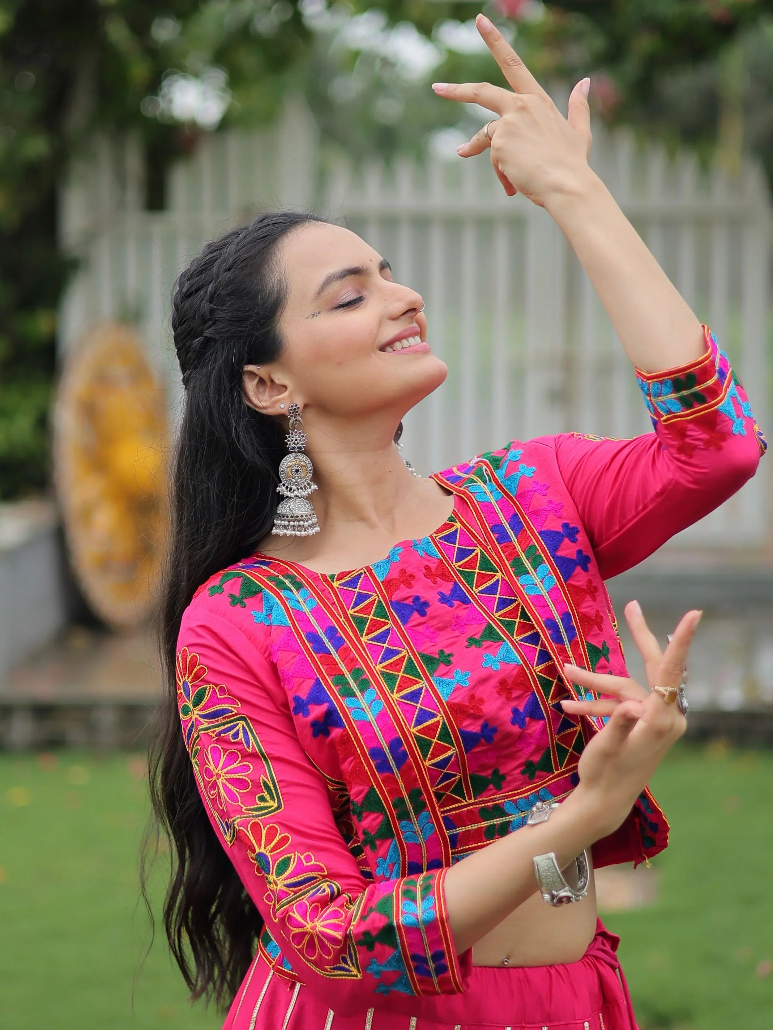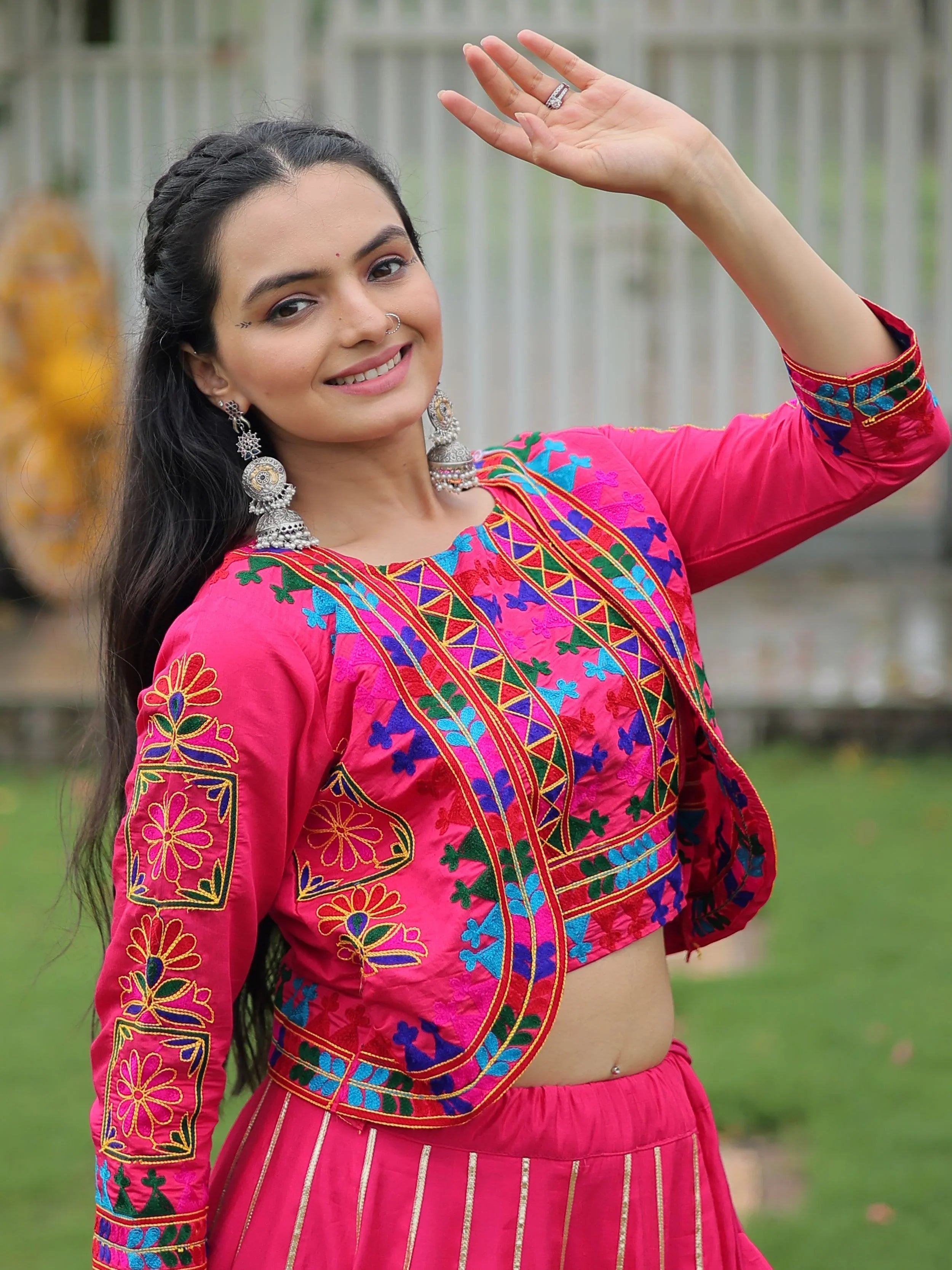 Pink Kutchi Gamthi Embroidered Gota Patti Lace Lehenga Choli With Koti
