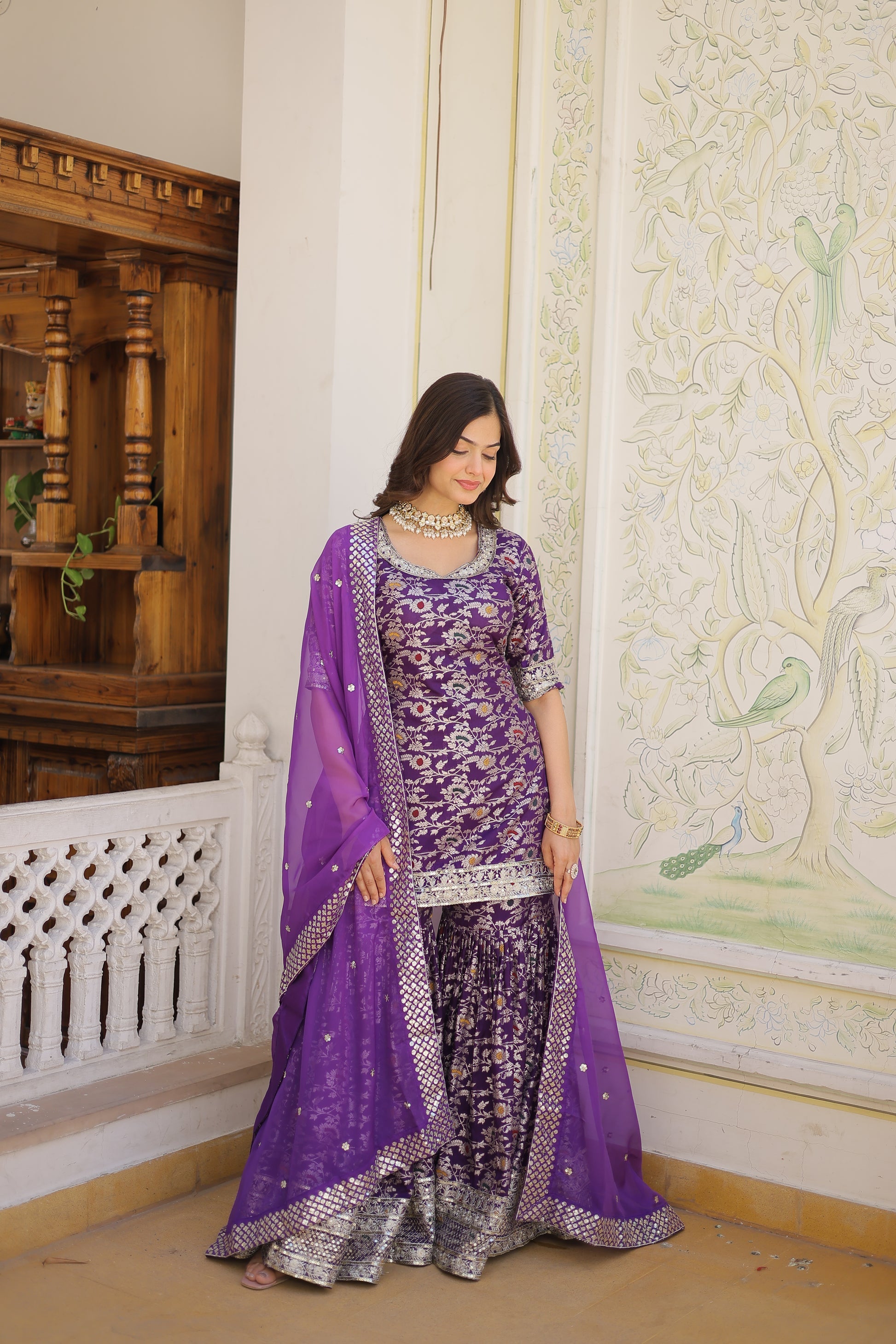 Prithvi Purple Georgette Kurti Sharara Set