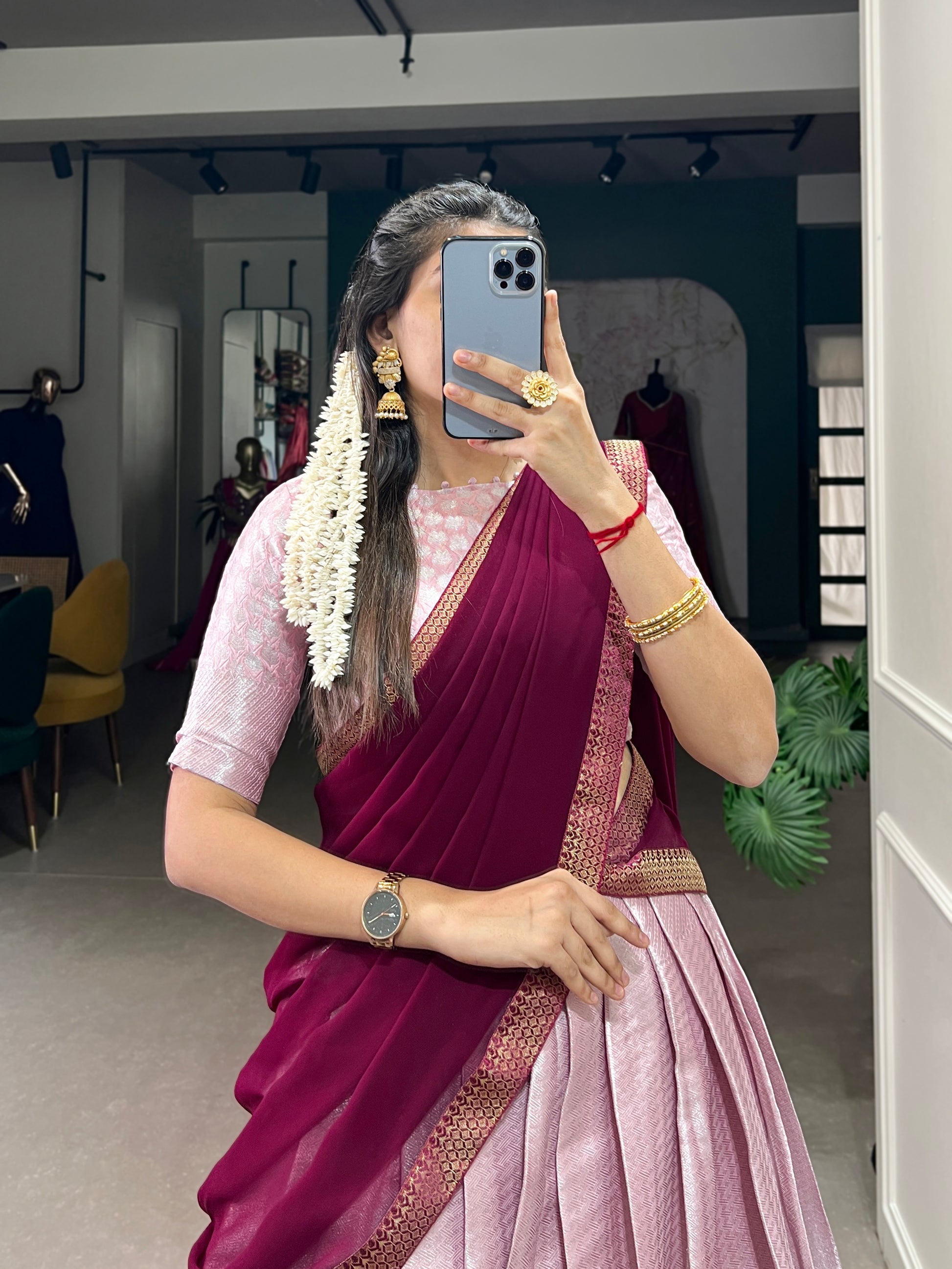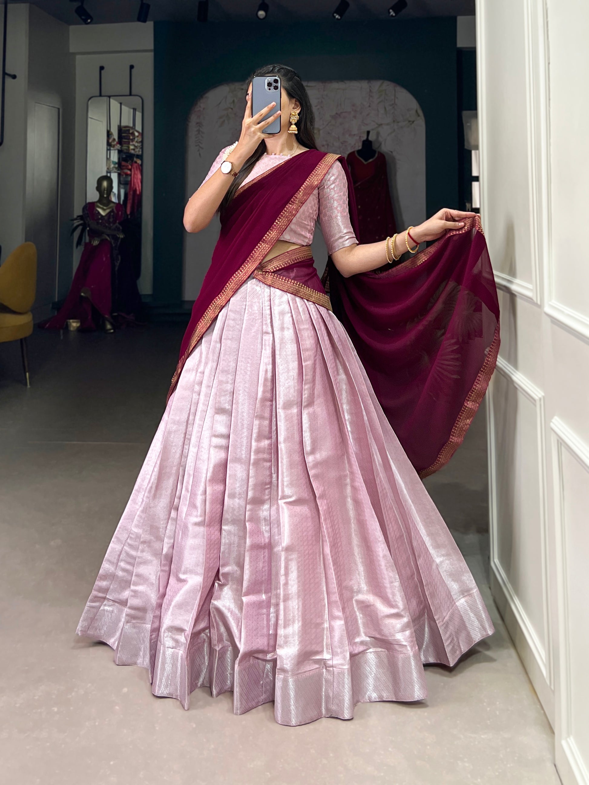 Pink Jacquard Silk Weaving Work Lehenga Choli With Dupatta and Lace Border