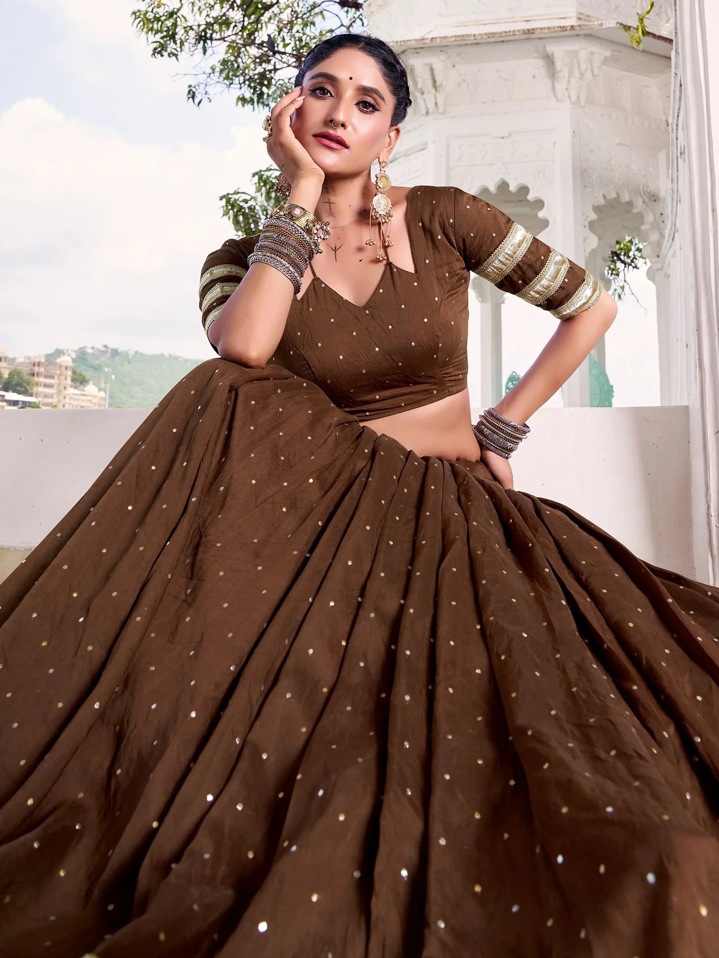 Brown Pure Chanderi Zari Weaving Embossed Lace Lehenga Choli