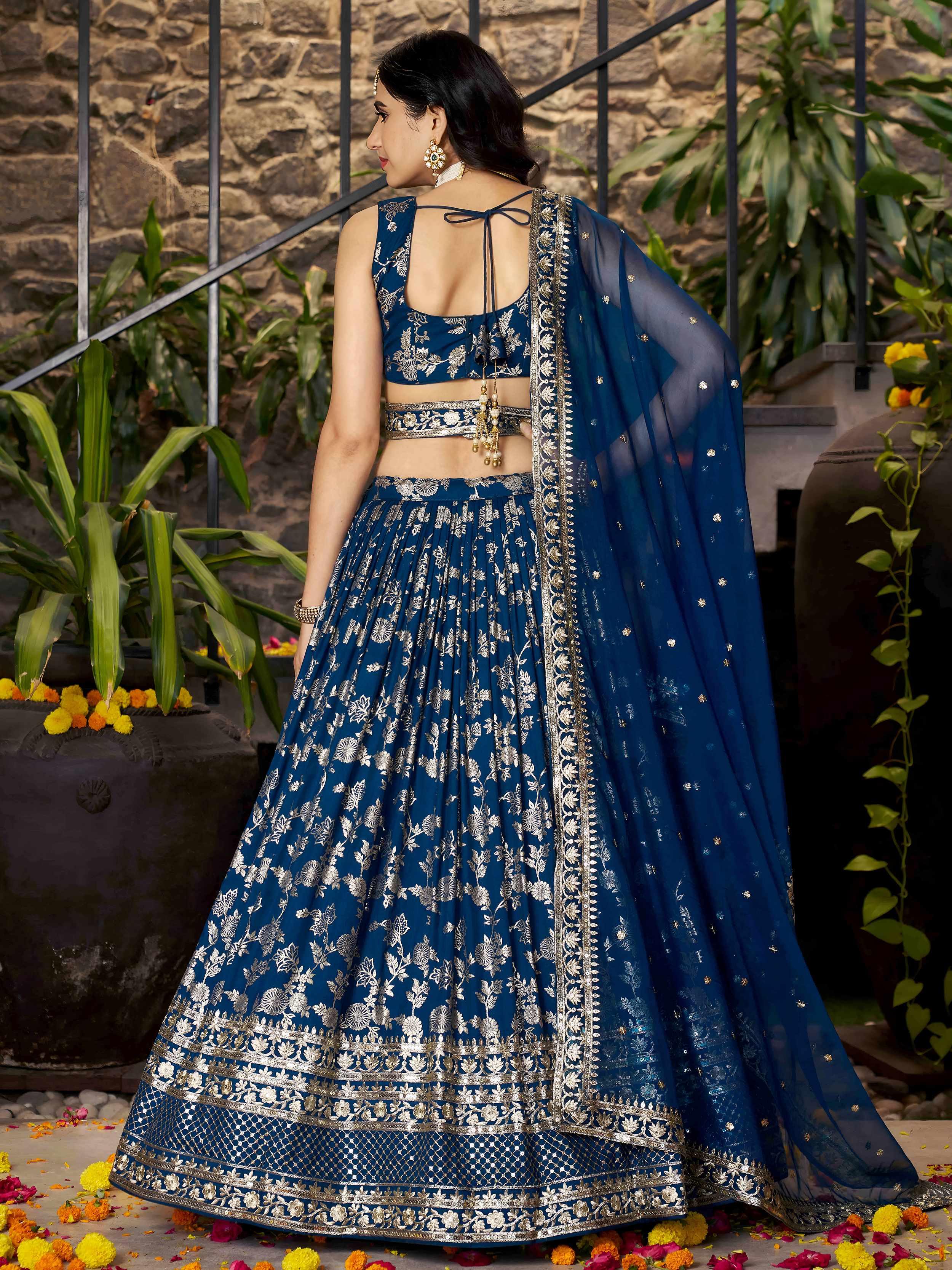 Dove Blue Dola Silk Jacquard Embroidered Lehenga Choli with Dupatta