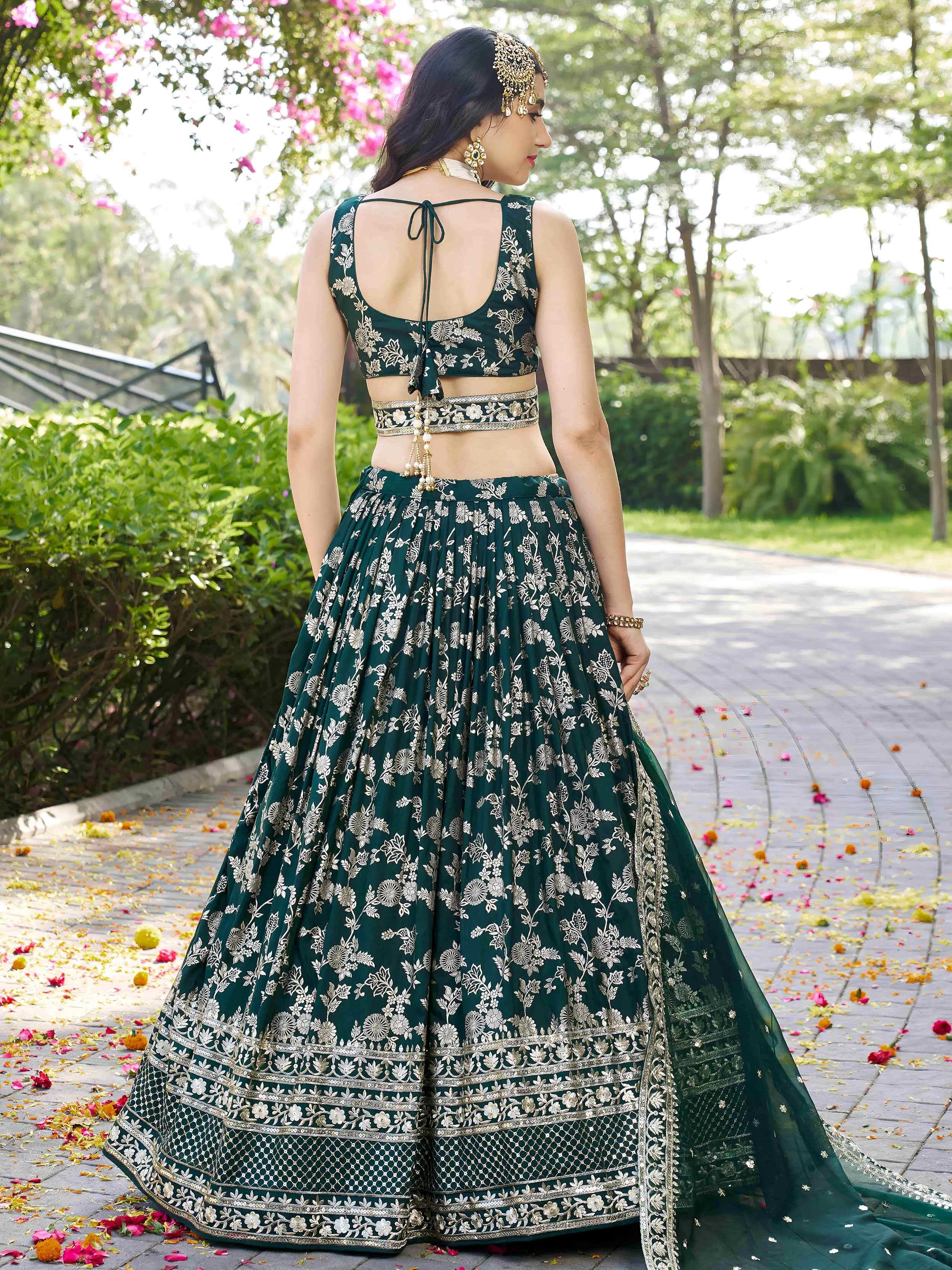 Emerald Green Dola Silk Jacquard Embroidered Lehenga Choli with Dupatta