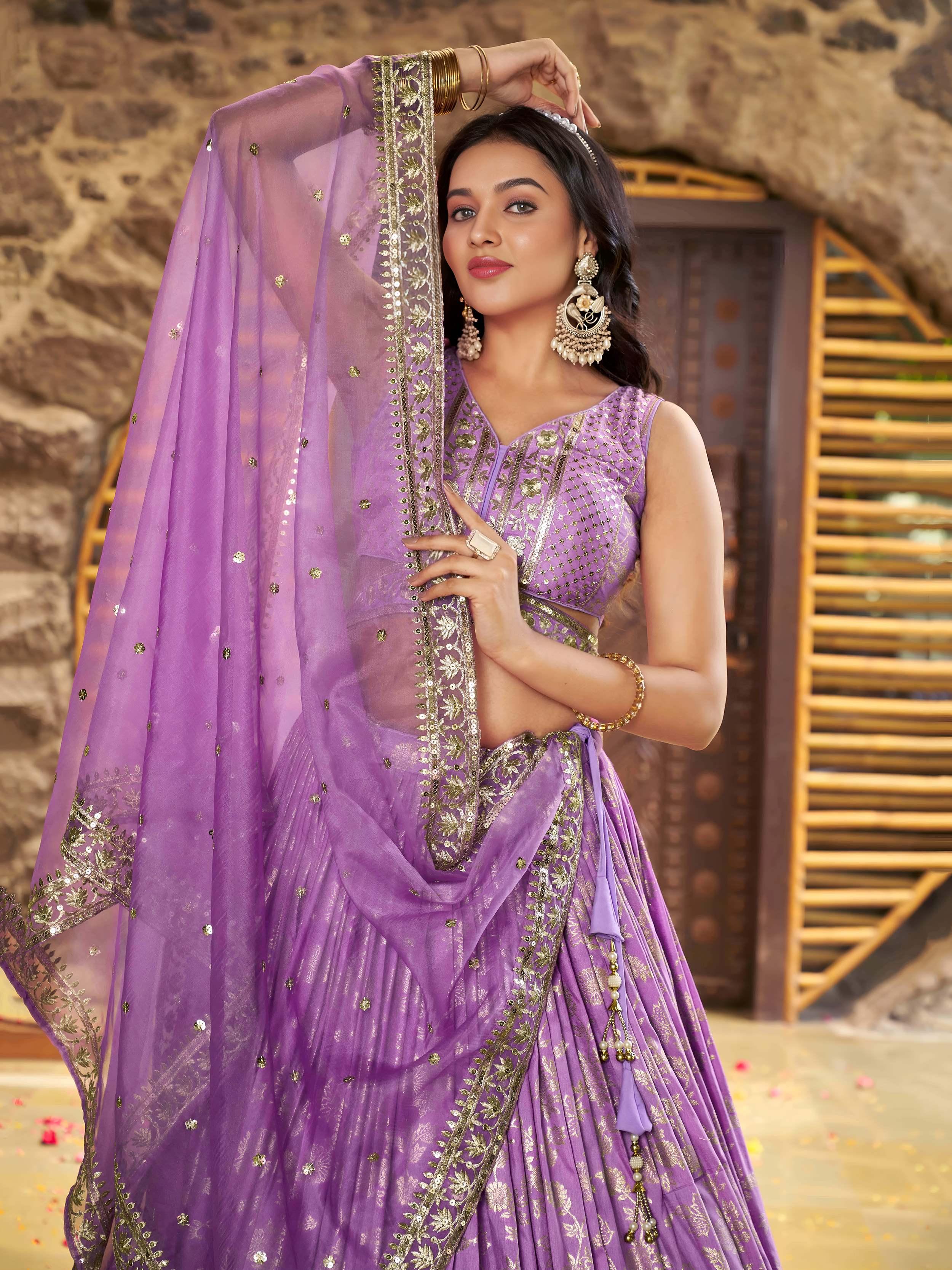 Lavender Dola Silk Jacquard Embroidered Lehenga Choli with Dupatta