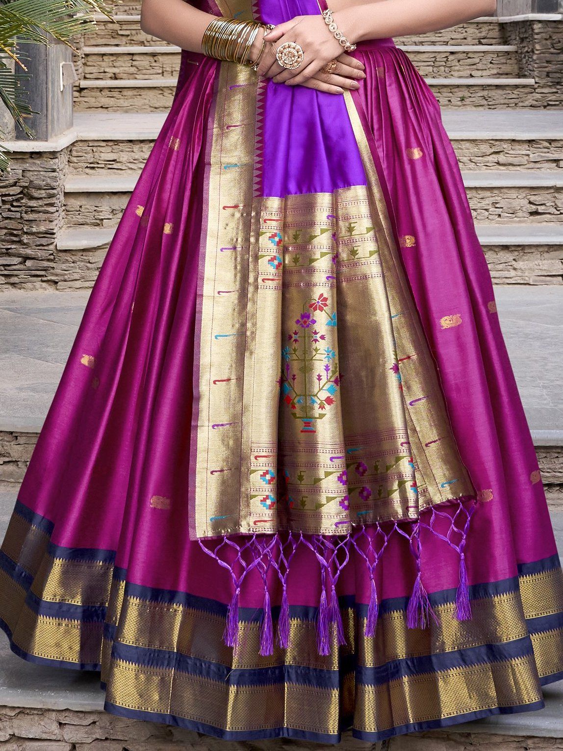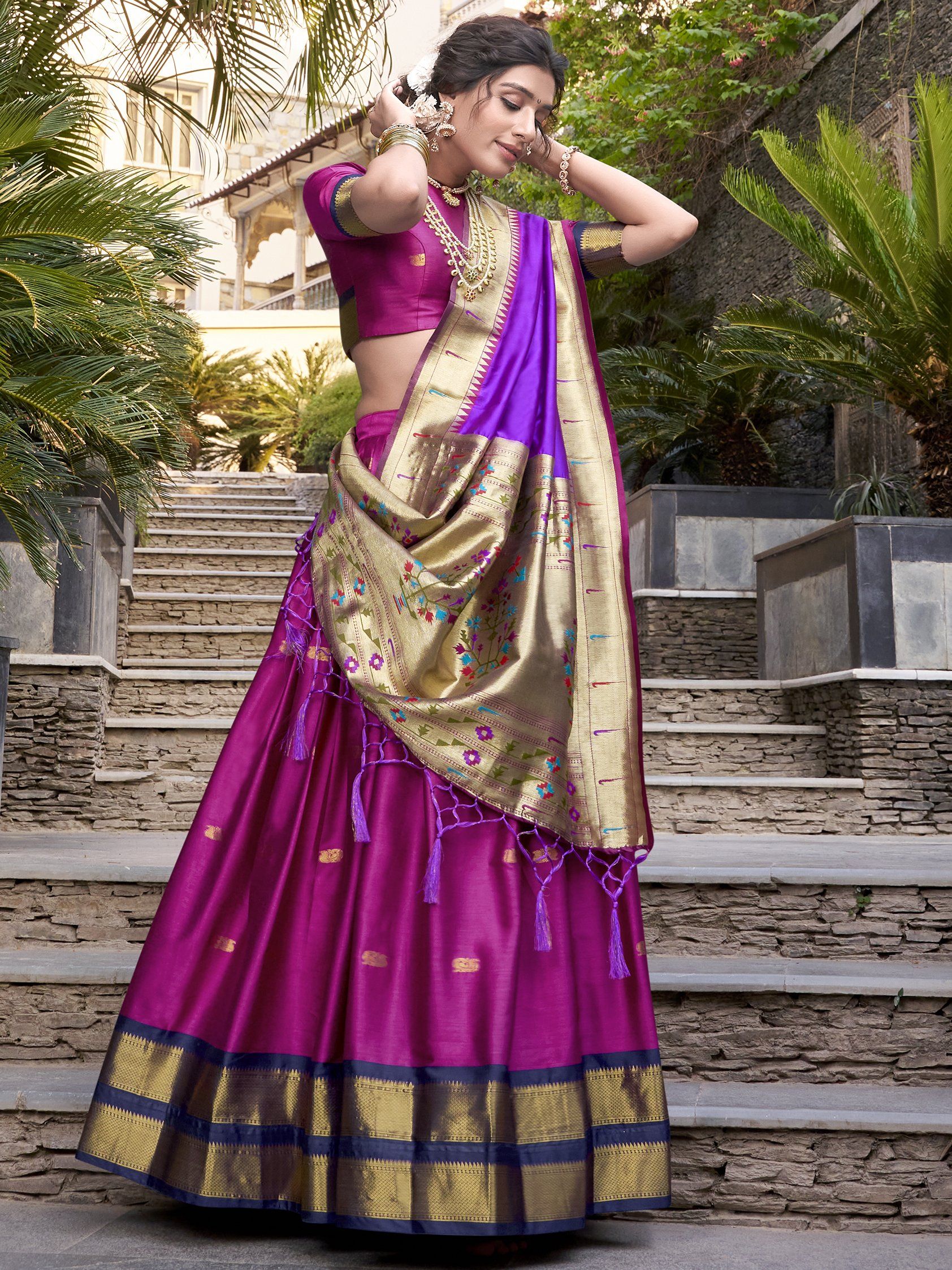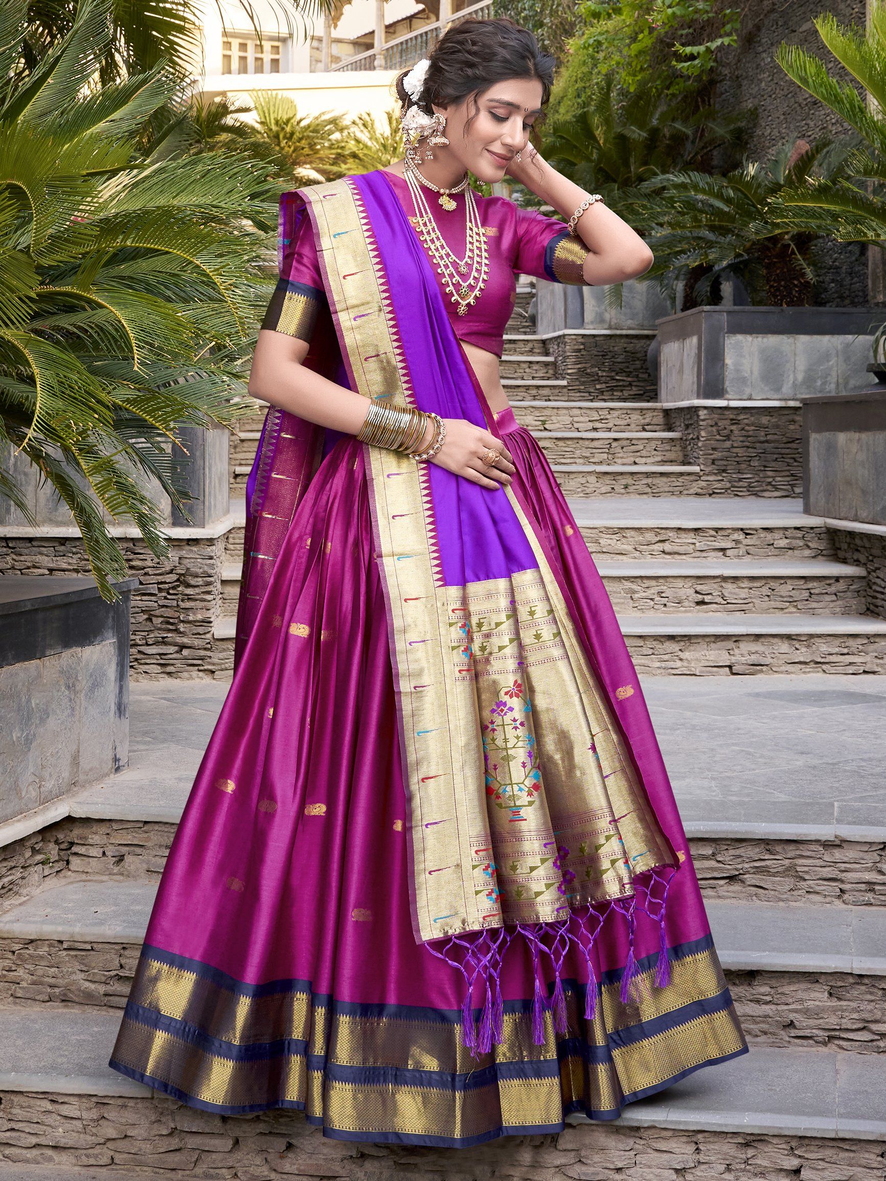 - Fabric: Jacquard Silk (Paithani)