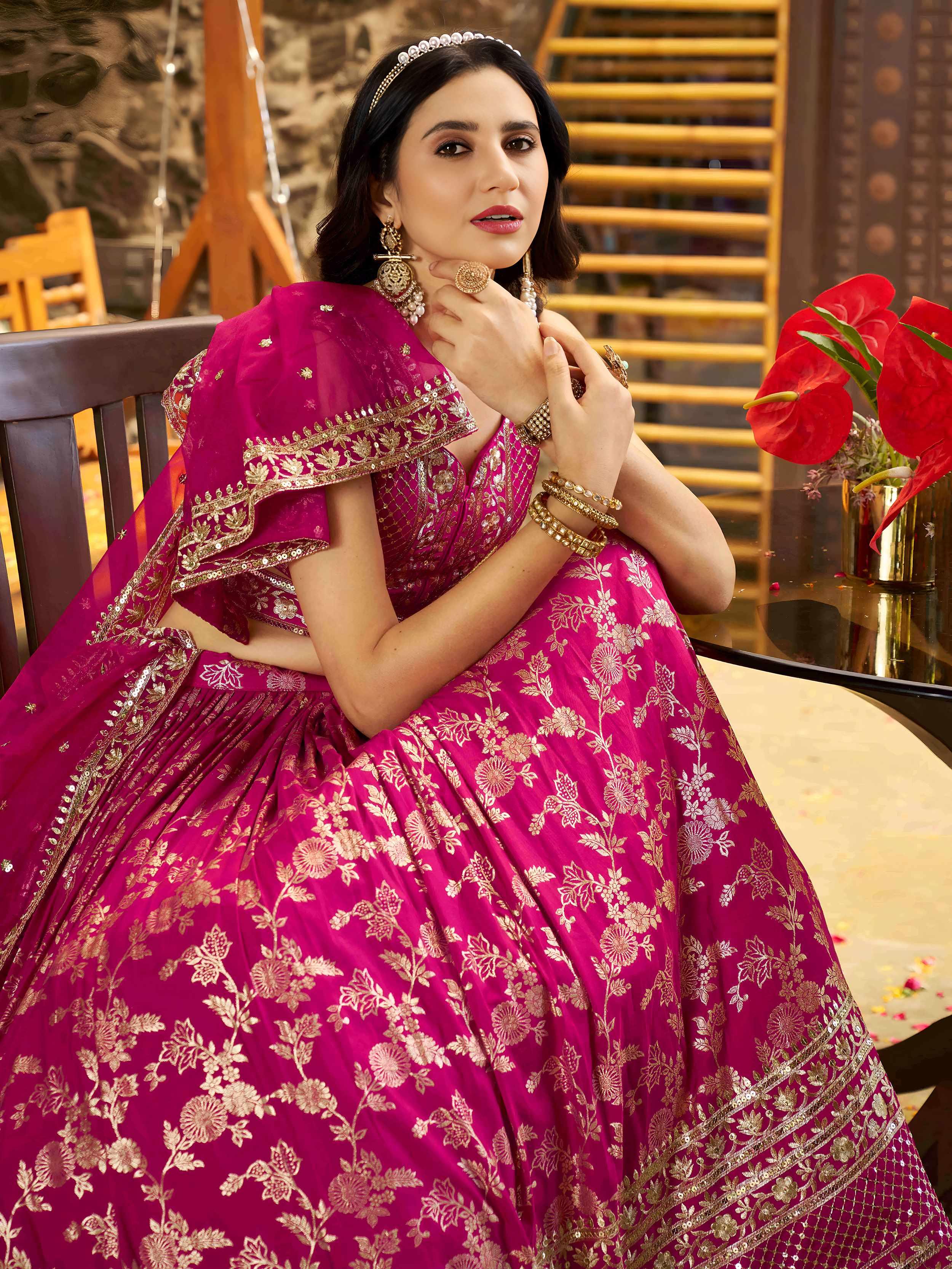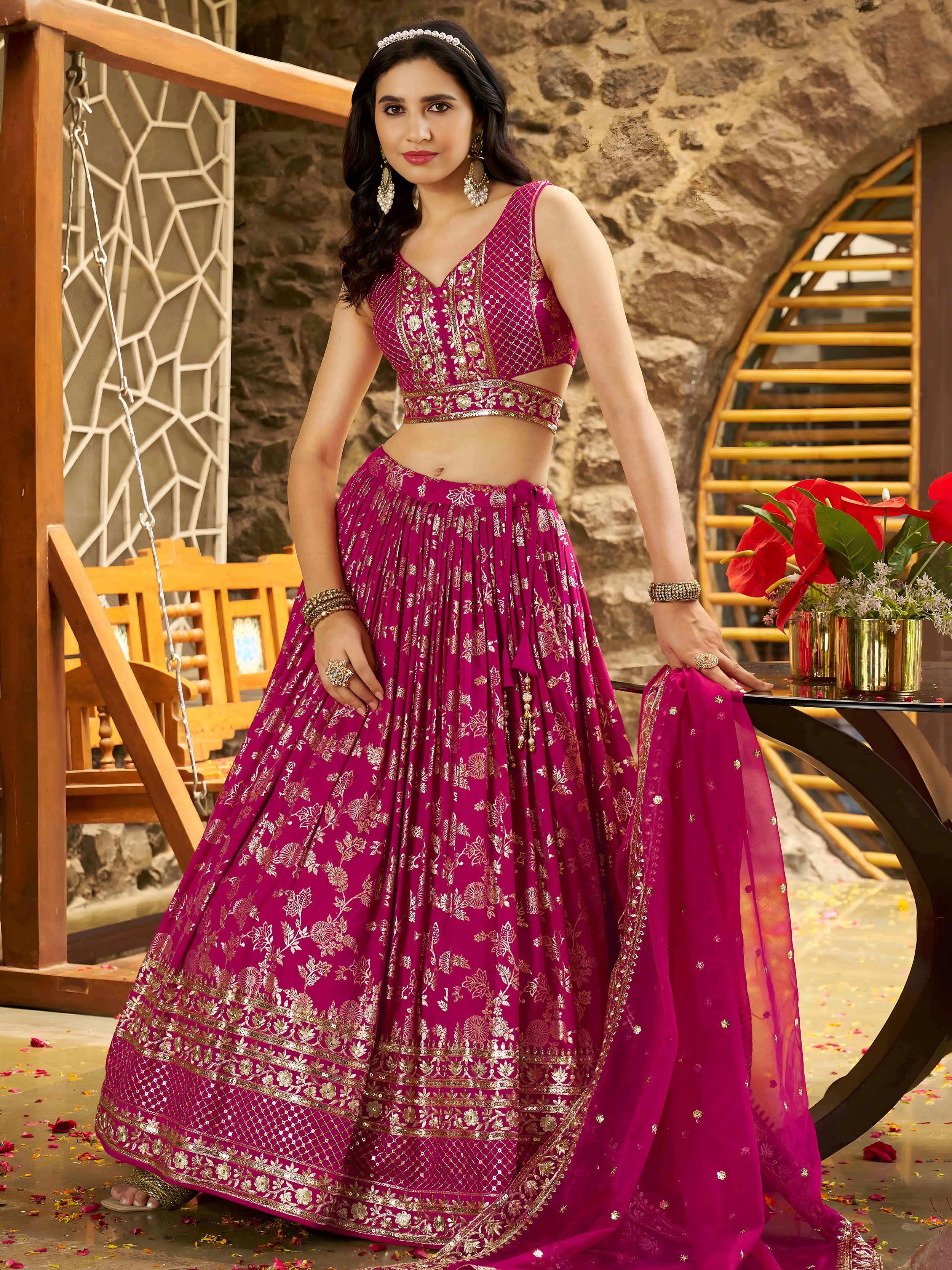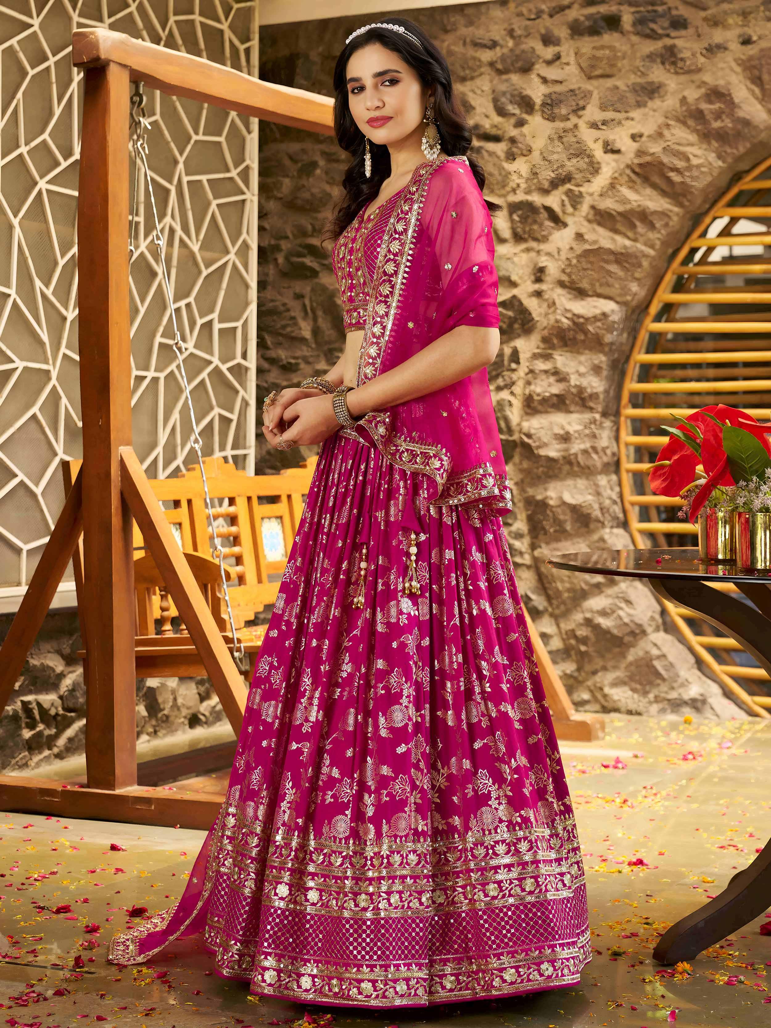 Rani Pink Dola Silk Jacquard Embroidered Lehenga Choli with Dupatta