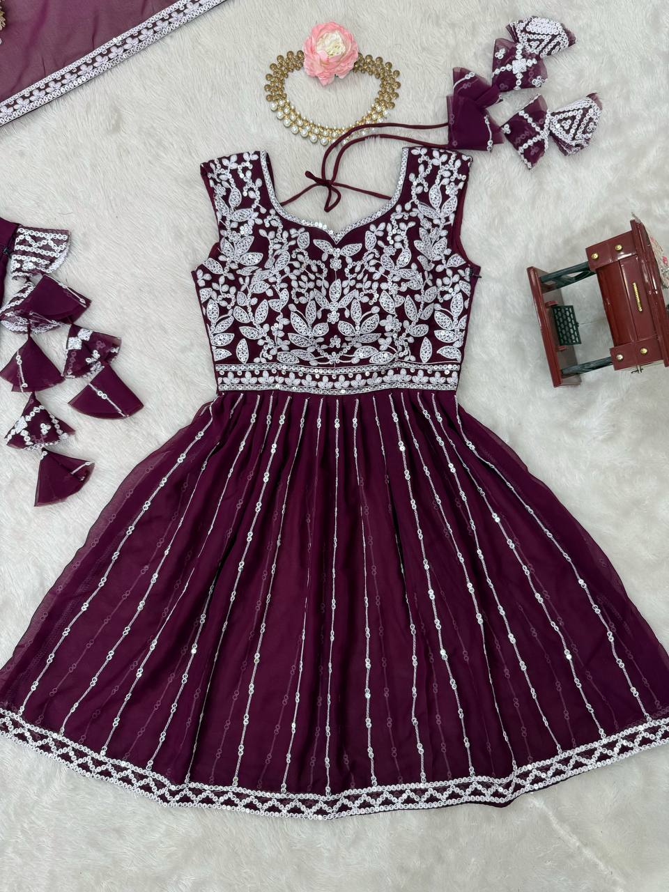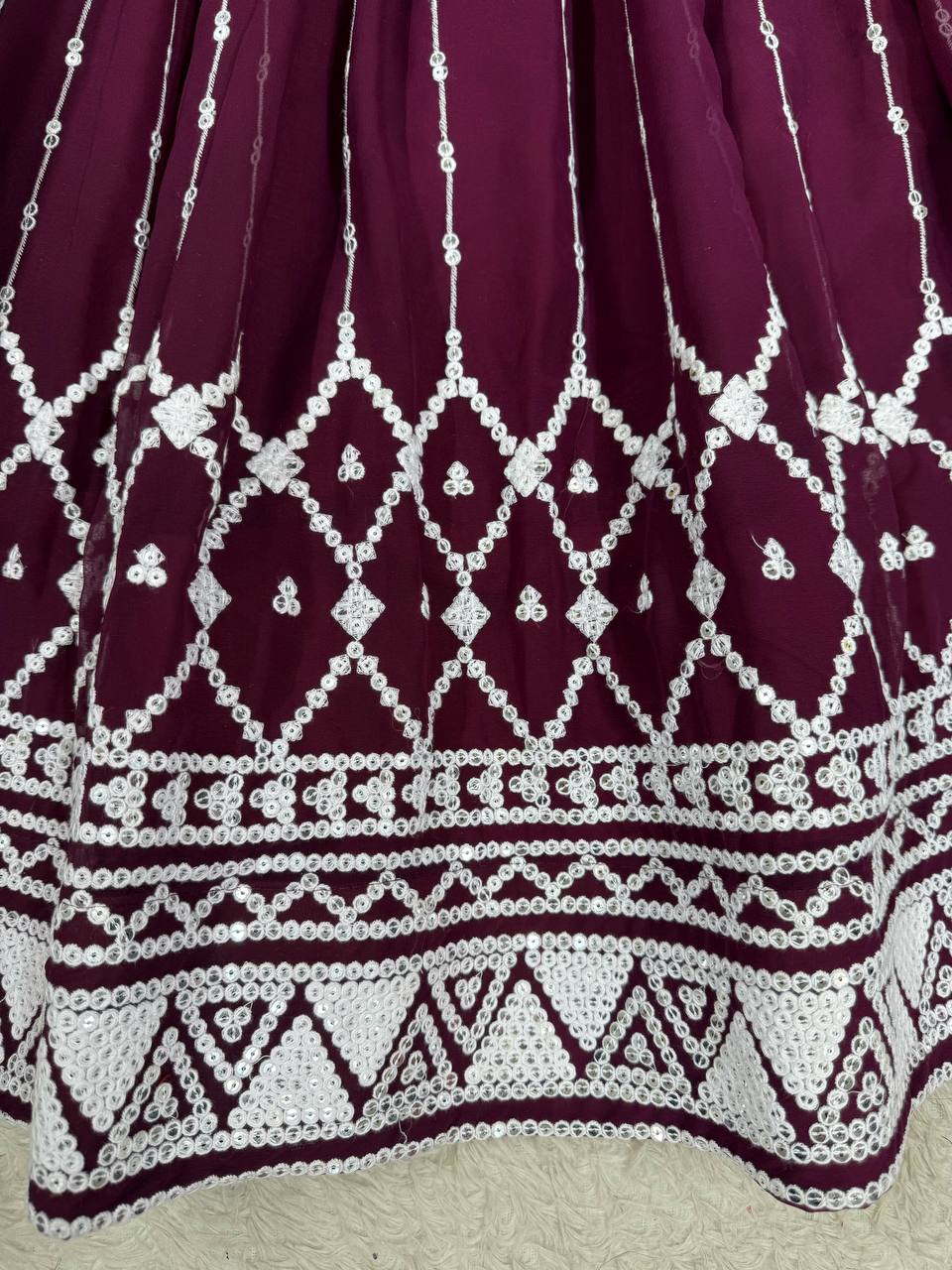 Step into the spotlight with this dazzling Wine Lehenga Choli Set, designed in soft and flowy Faux Georgette fabric. The entire outfit is richly crafted with Thread and 9MM Sequins Work, making it a perfect statement piece for festive occasions, wedding functions, sangeet nights, and reception ceremonies.
