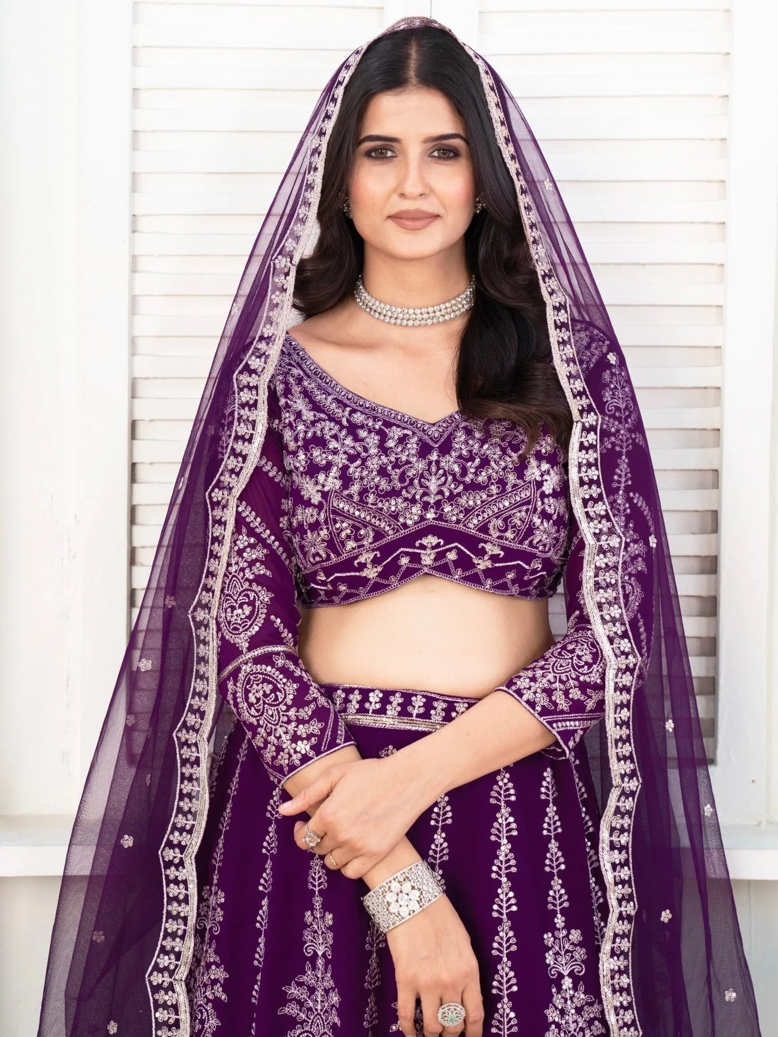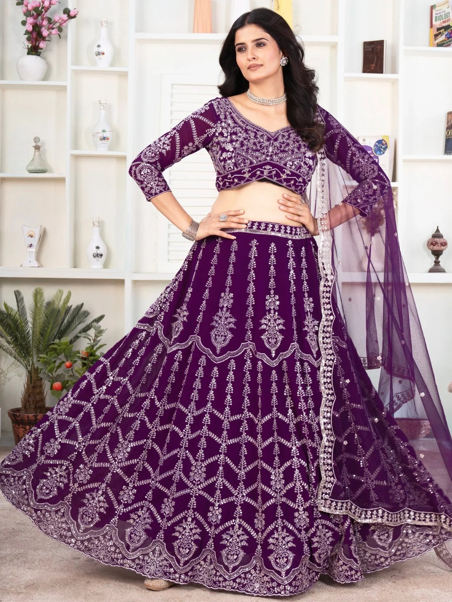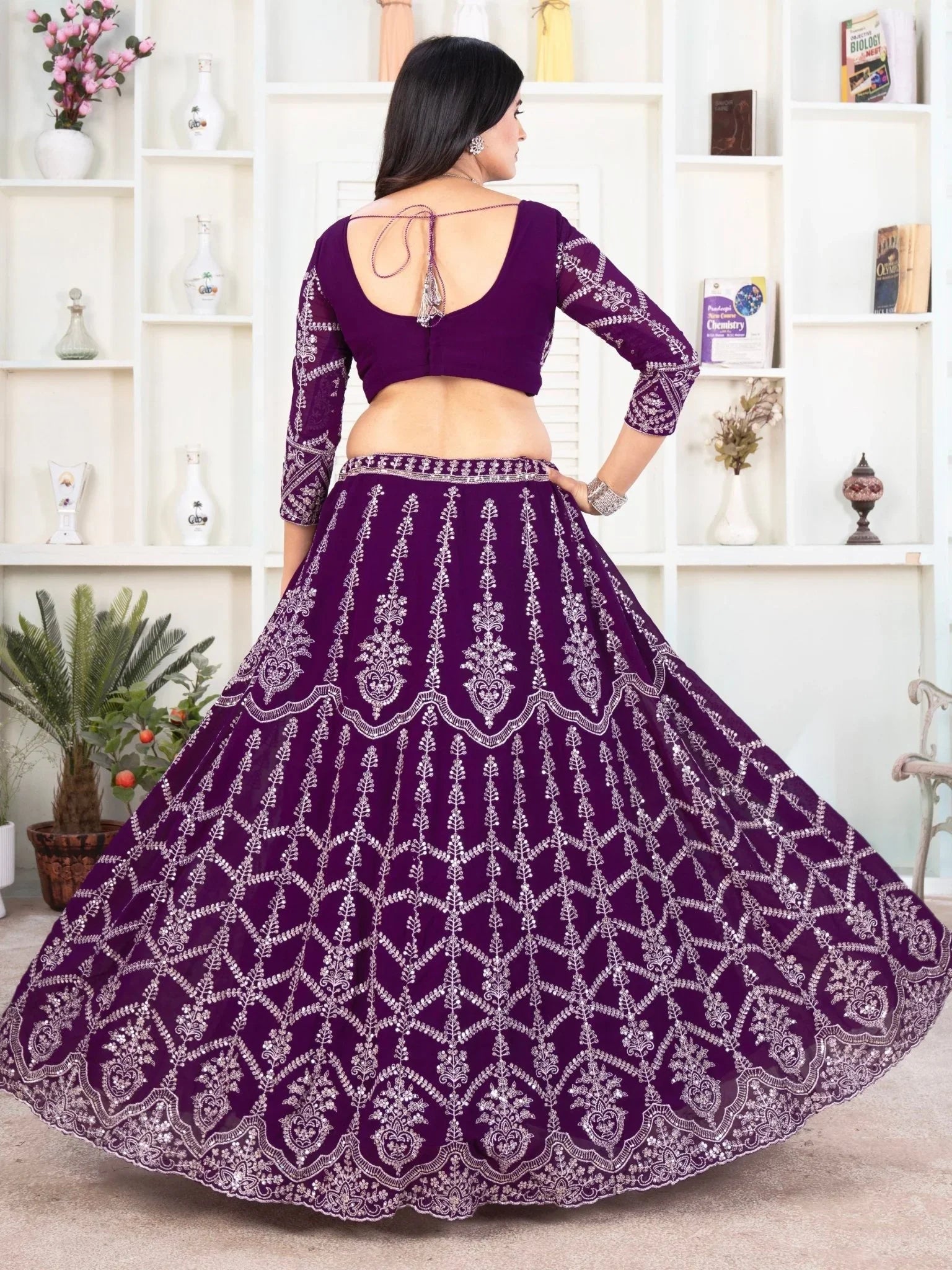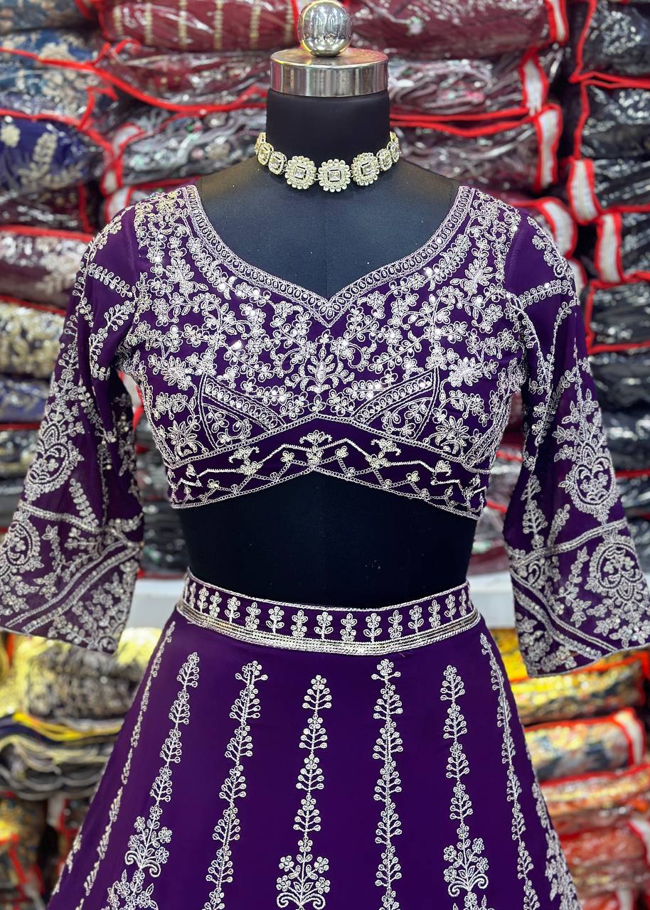 Add a regal touch to your wardrobe with this stunning Purple Faux Georgette Lehenga Choli Set, designed with intricate sequins embroidery work that sparkles with grace and glamour. Perfect for festive functions, sangeet, weddings, and special celebrations, this lightweight ensemble ensures comfort without compromising on style.