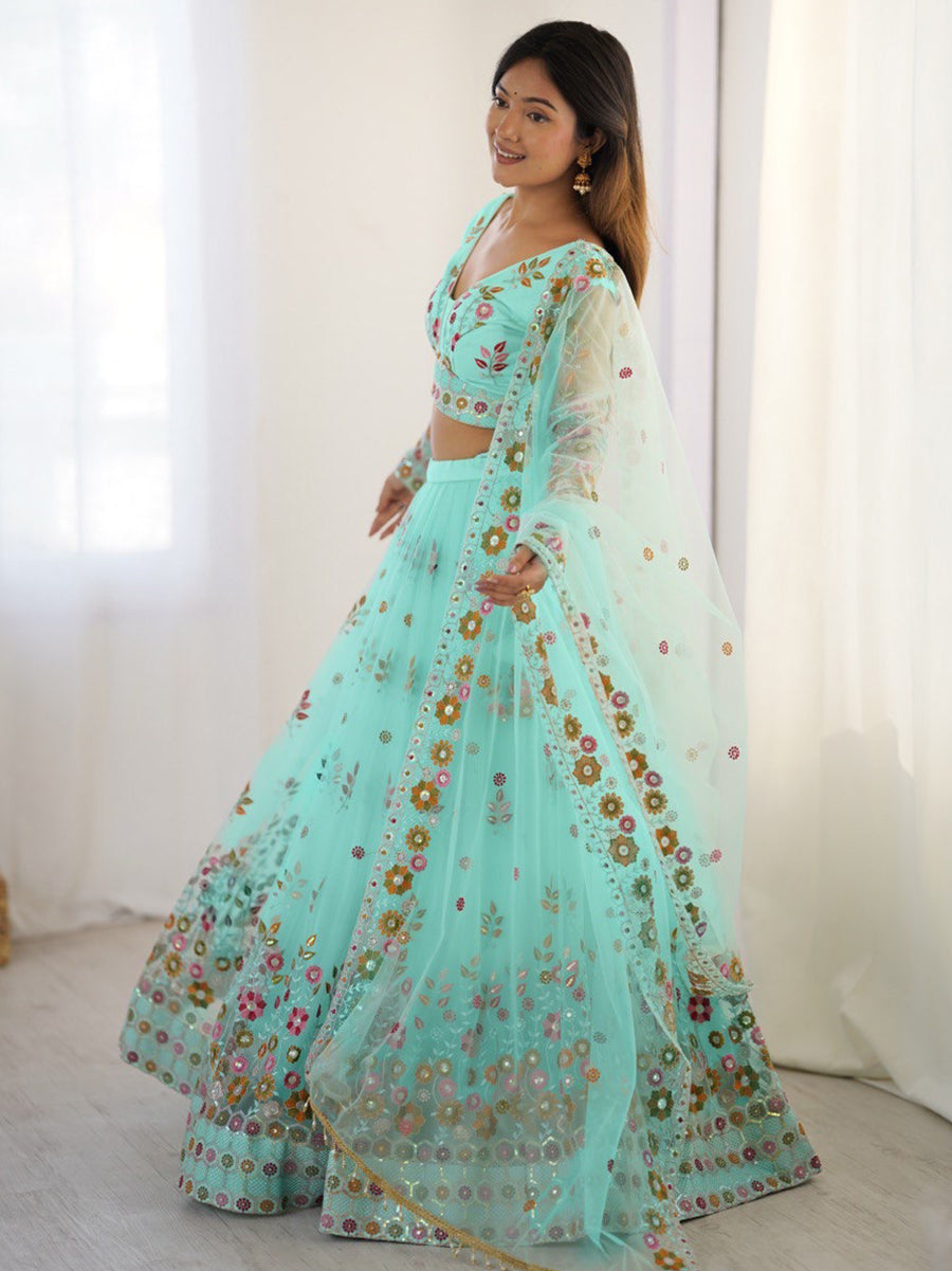 A lehenga choli is synonymous with grand festivities. Whether it's a wedding lehenga, bridal saree, or an embroidered lehenga, these outfits bring a royal touch to any occasion. Choose from silk lehengas, net lehengas, or party wear lehengas to make a lasting impression.
