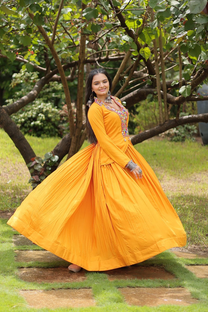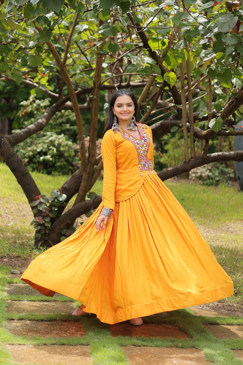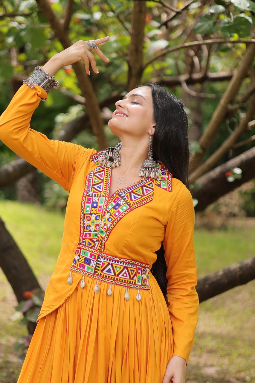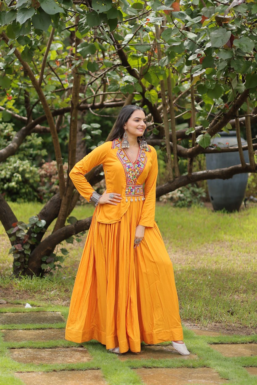 Experience the essence of traditional Kutchi Gamthi work with our Misty Yellow Rayon Navratri Gown. Made from high-quality rayon, this gown is perfect for celebrating the festive season with style and comfort. The intricate work and vibrant color make it a must-have for any special occasion.