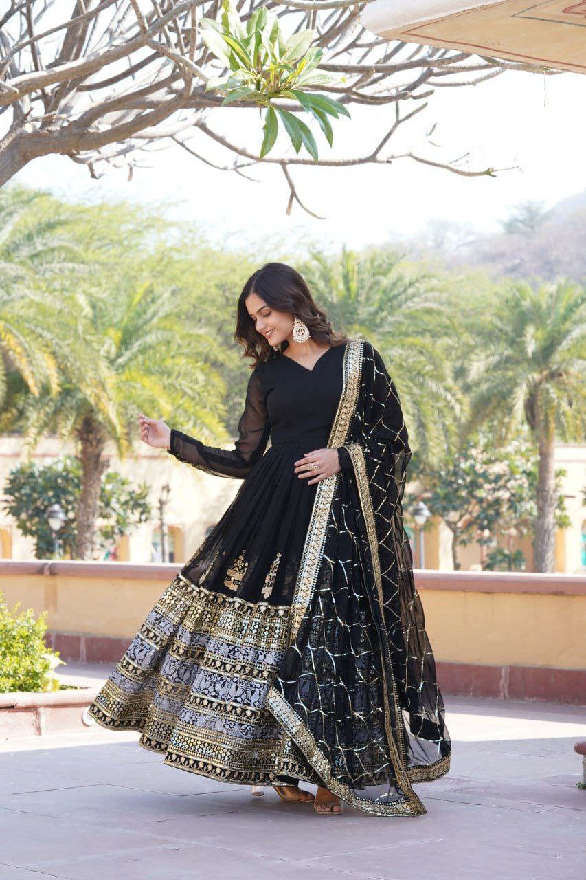 Anagha Black Georgette Embroidered Anarkali Gown Set