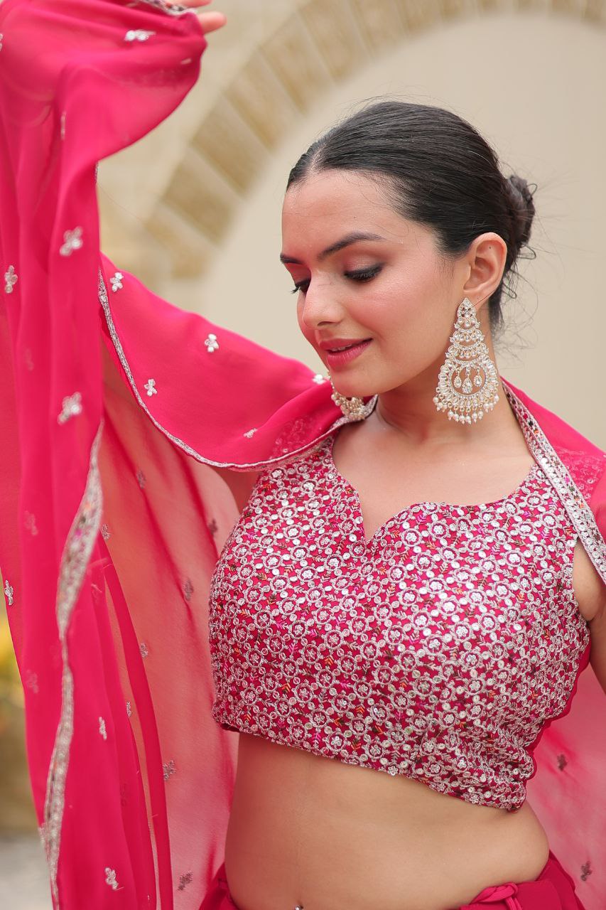 • Avira Faux Georgette Embroidery Sequance Lehanga Set