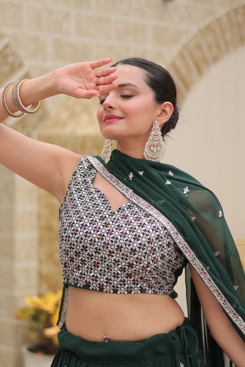 Avira Faux Georgette Embroidery Sequance Lehanga Set