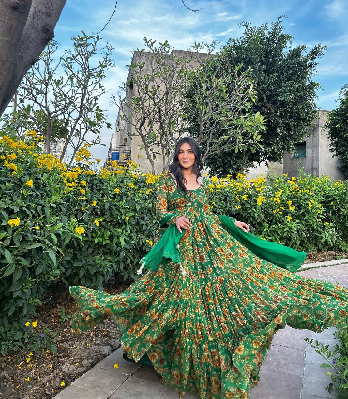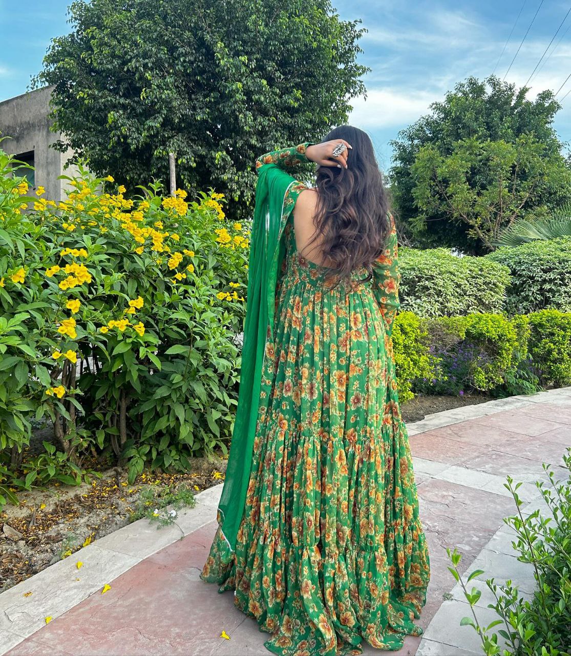 - Anarkali Gown - Digital printed pure Georgette silk Anarkali suit of huge flair 🌸