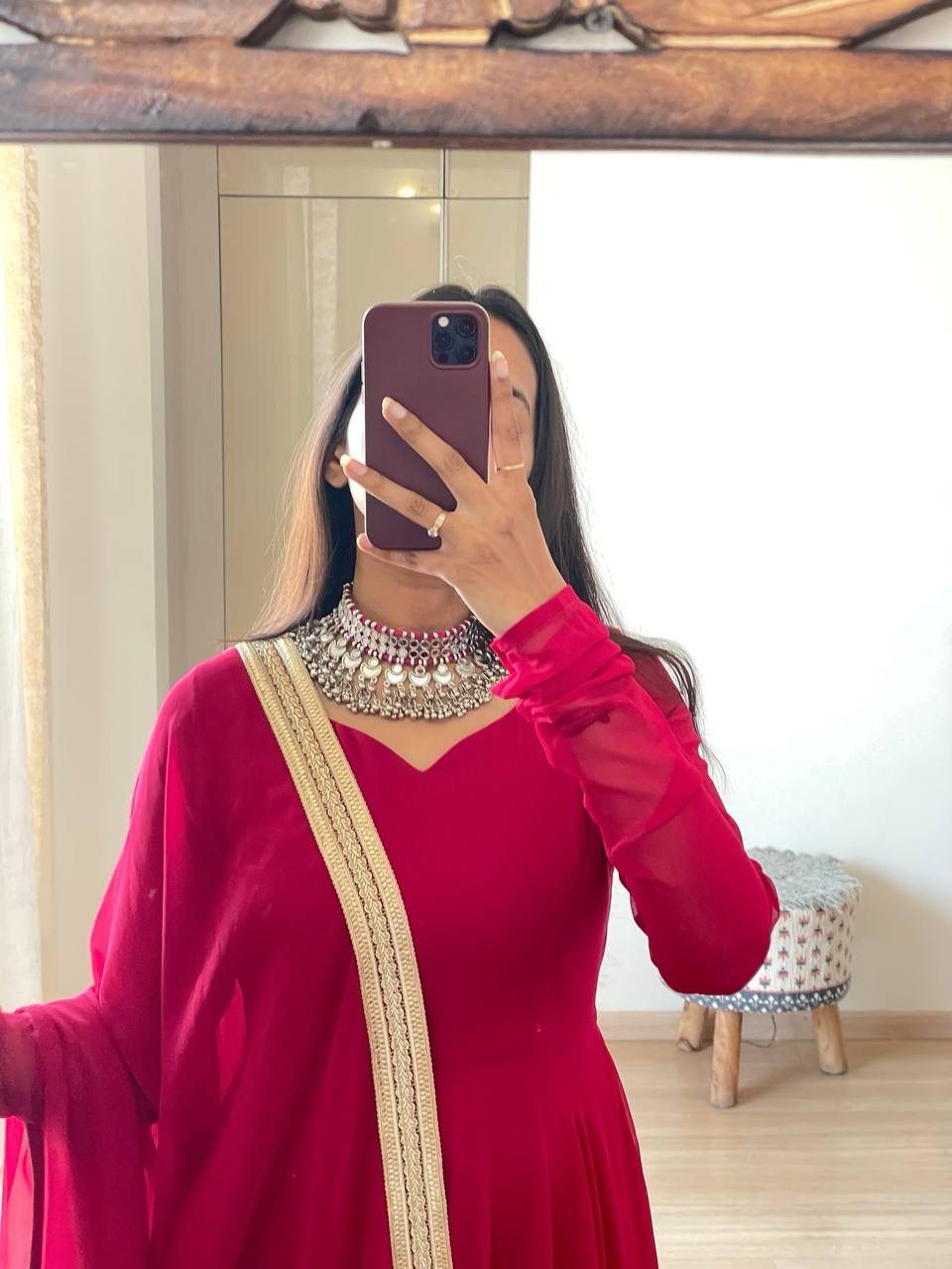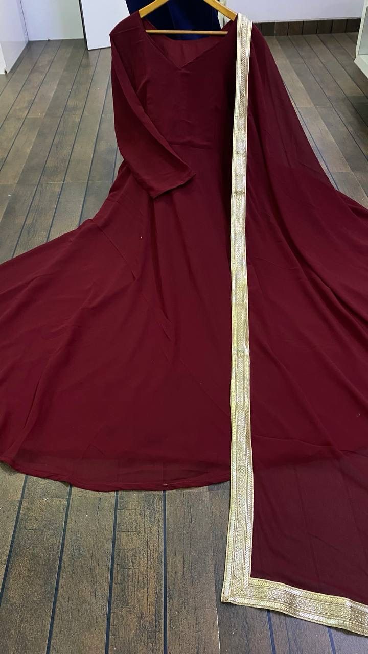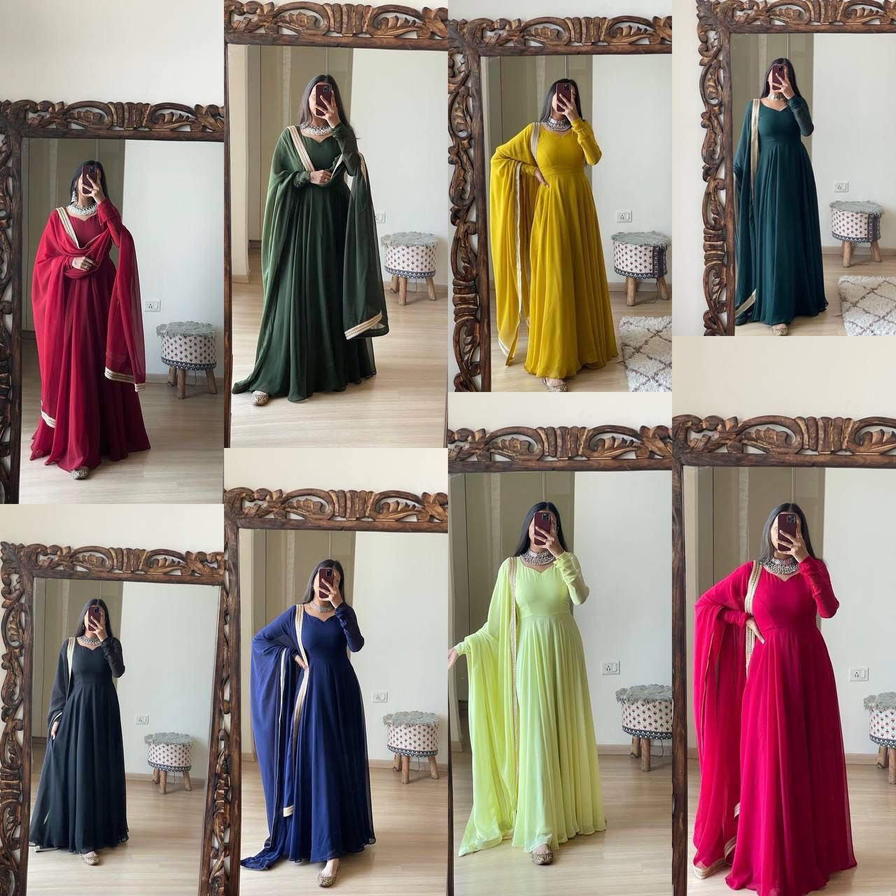 Be the epitome of modern royalty with our Georgette Anarkali - an elegant flare that will make you stand out! Made from high-quality georgette, this dress is both luxurious and comfortable. Perfect for any occasion, this Anarkali will have you feeling regal and confident. Get ready to turn heads!