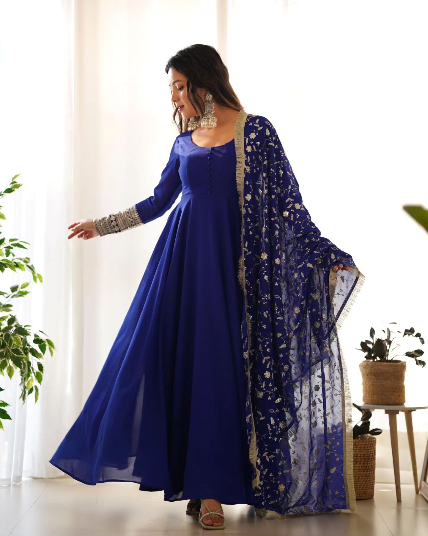 Glamorous Blue Anarkali Flared Kurti Set with Dupatta