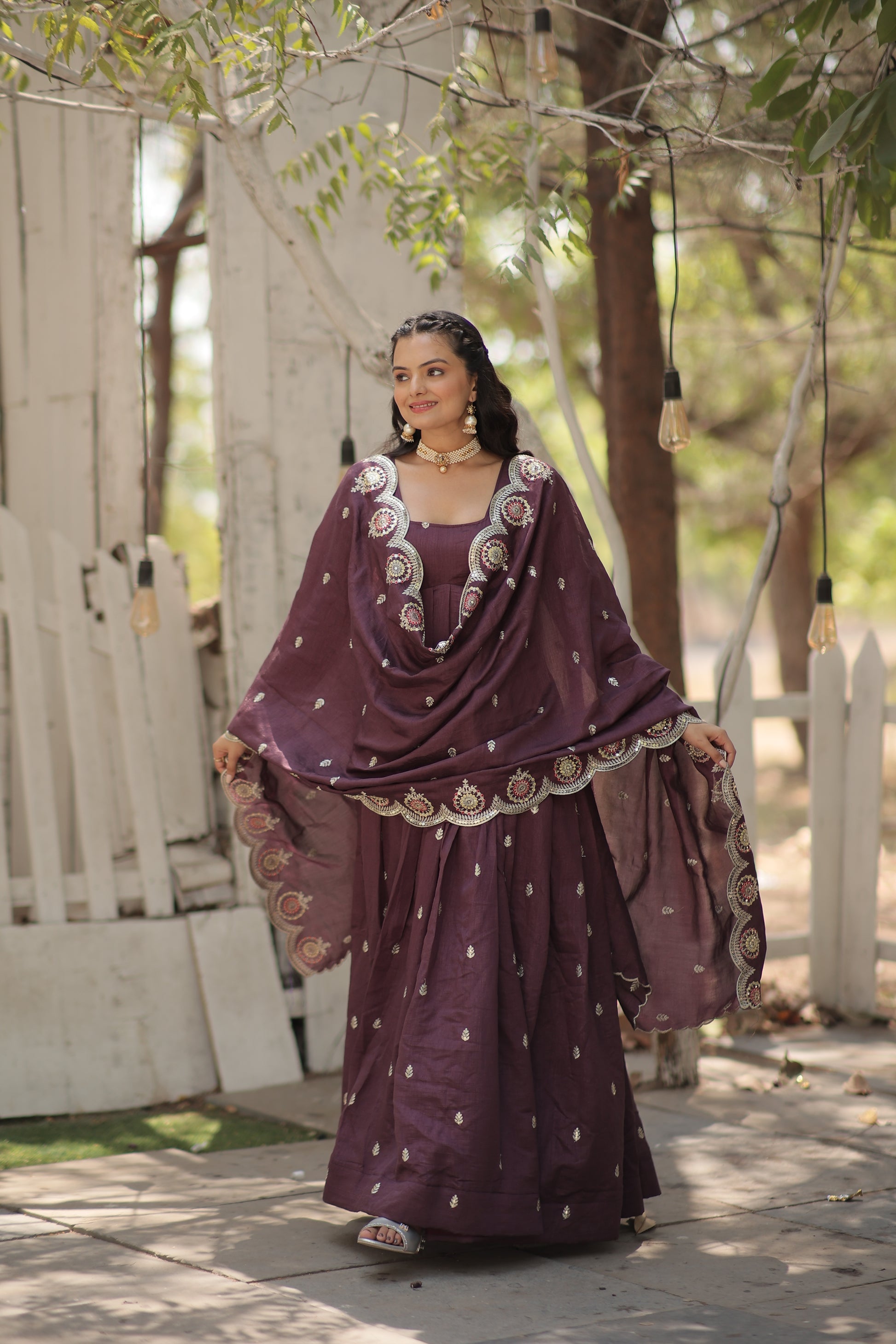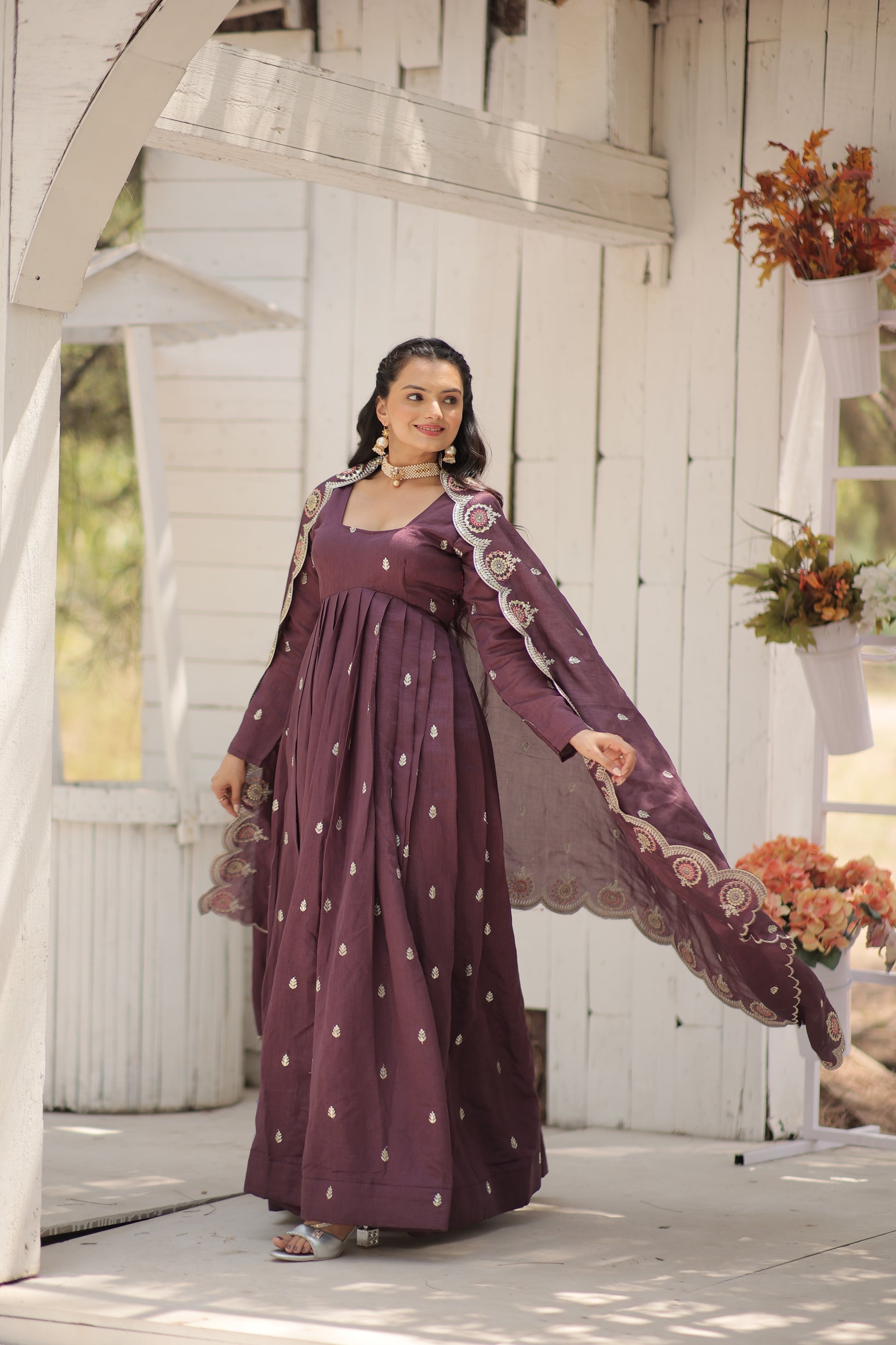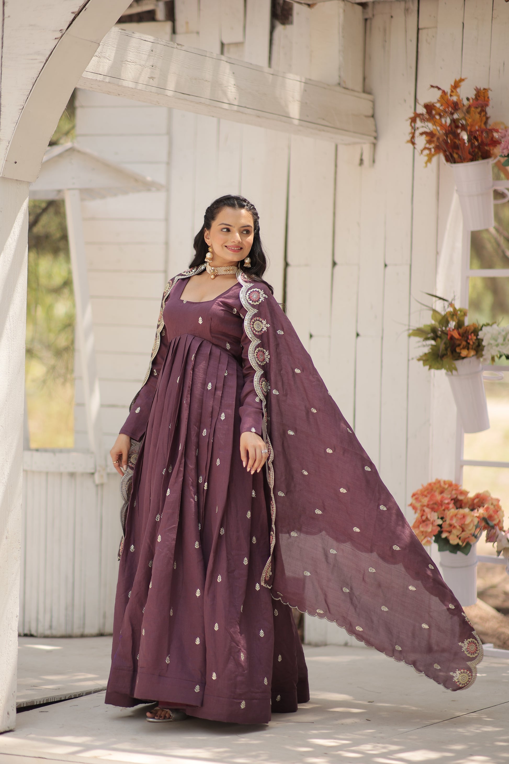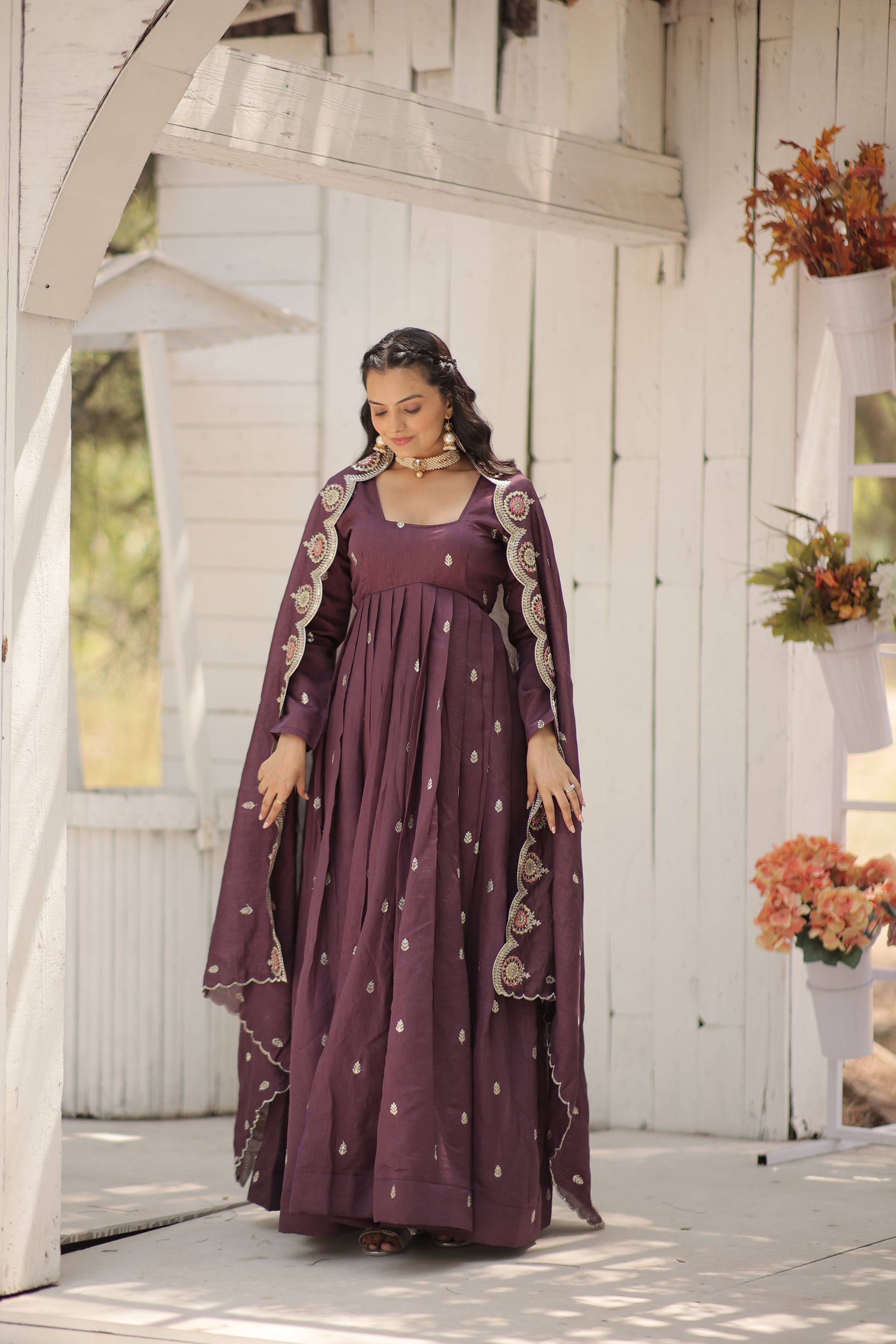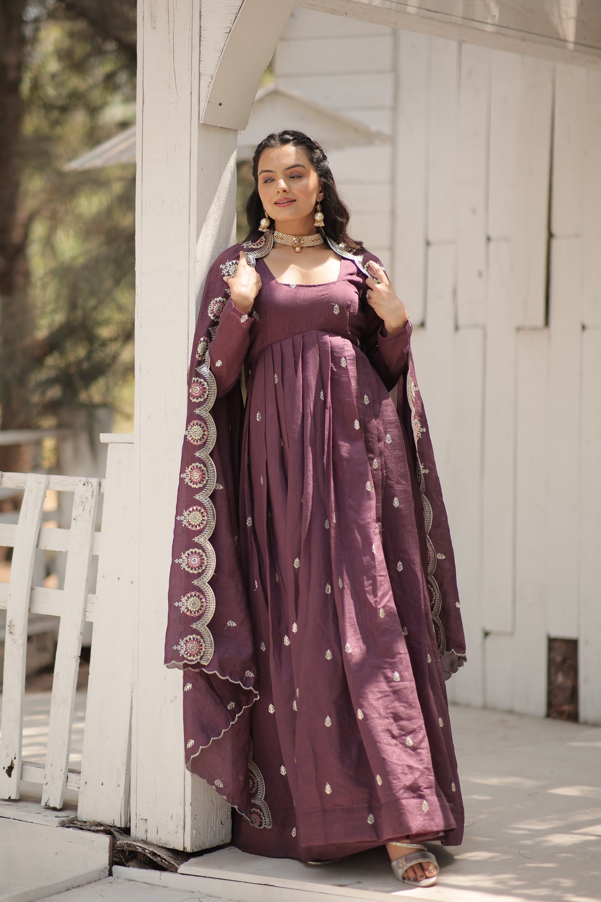 Hritvi Onion Pink Embroidered Anarkali Gown Set