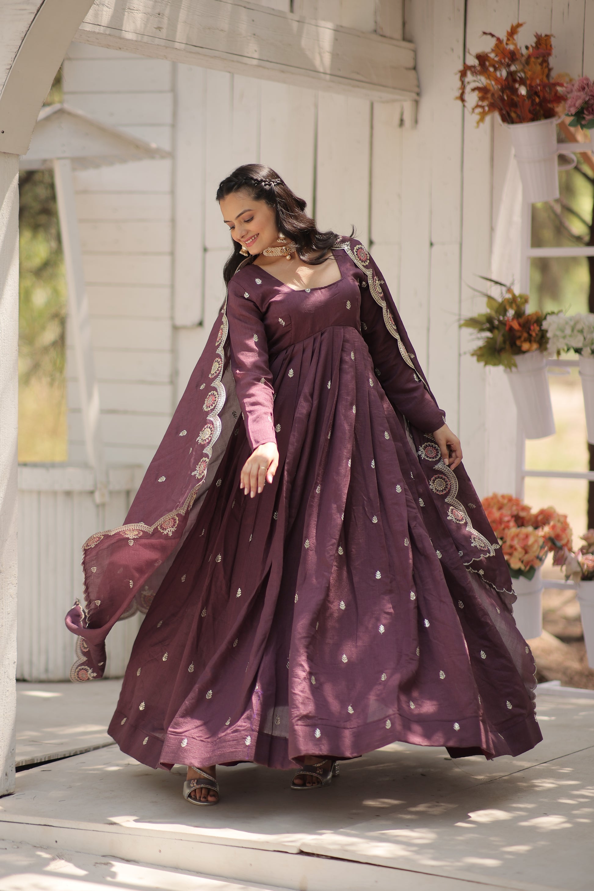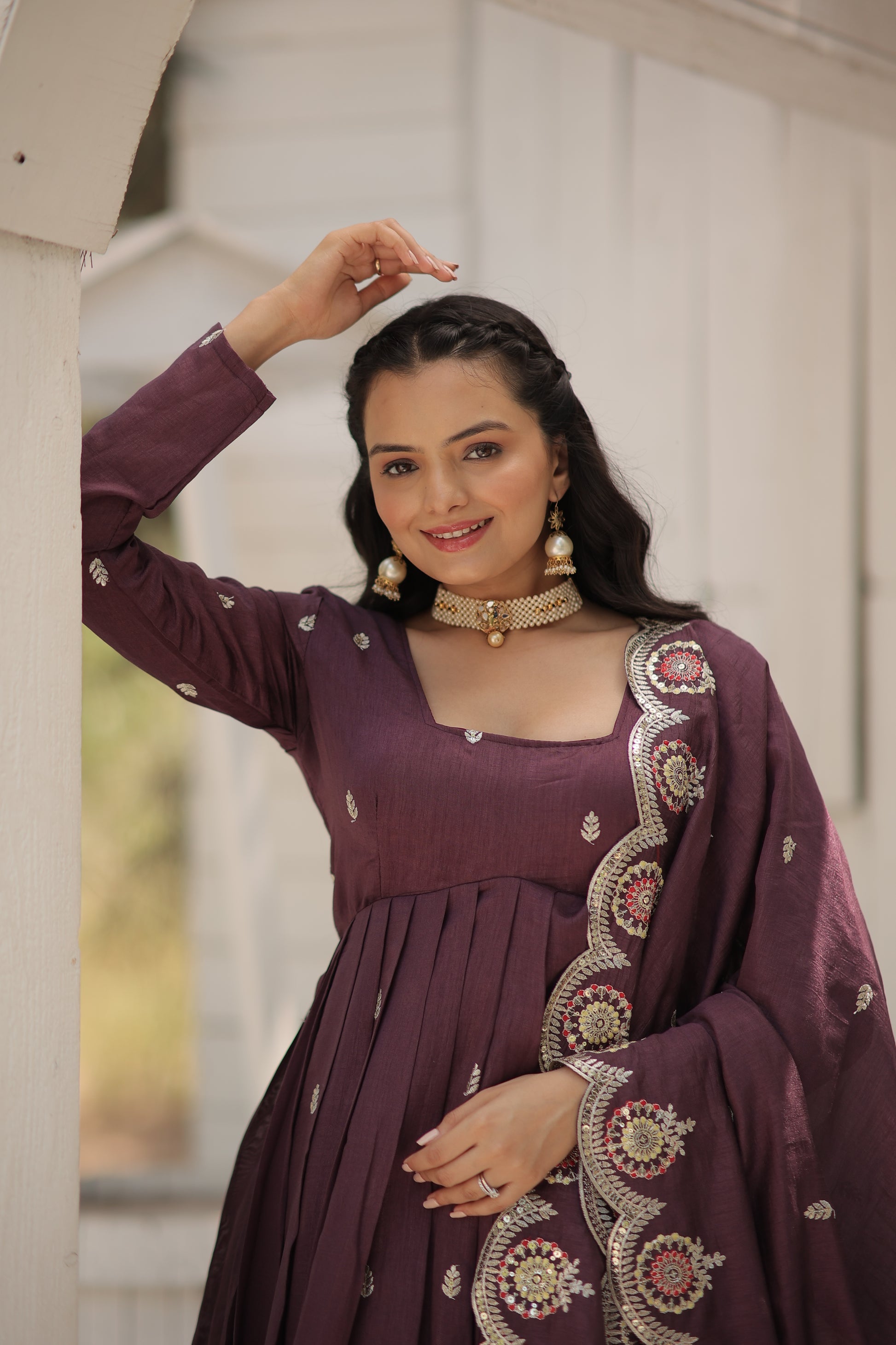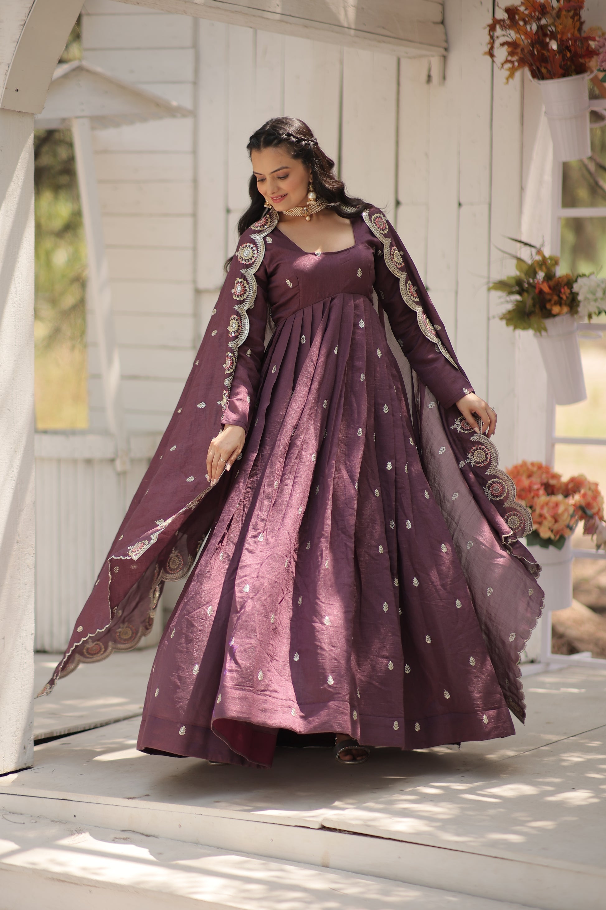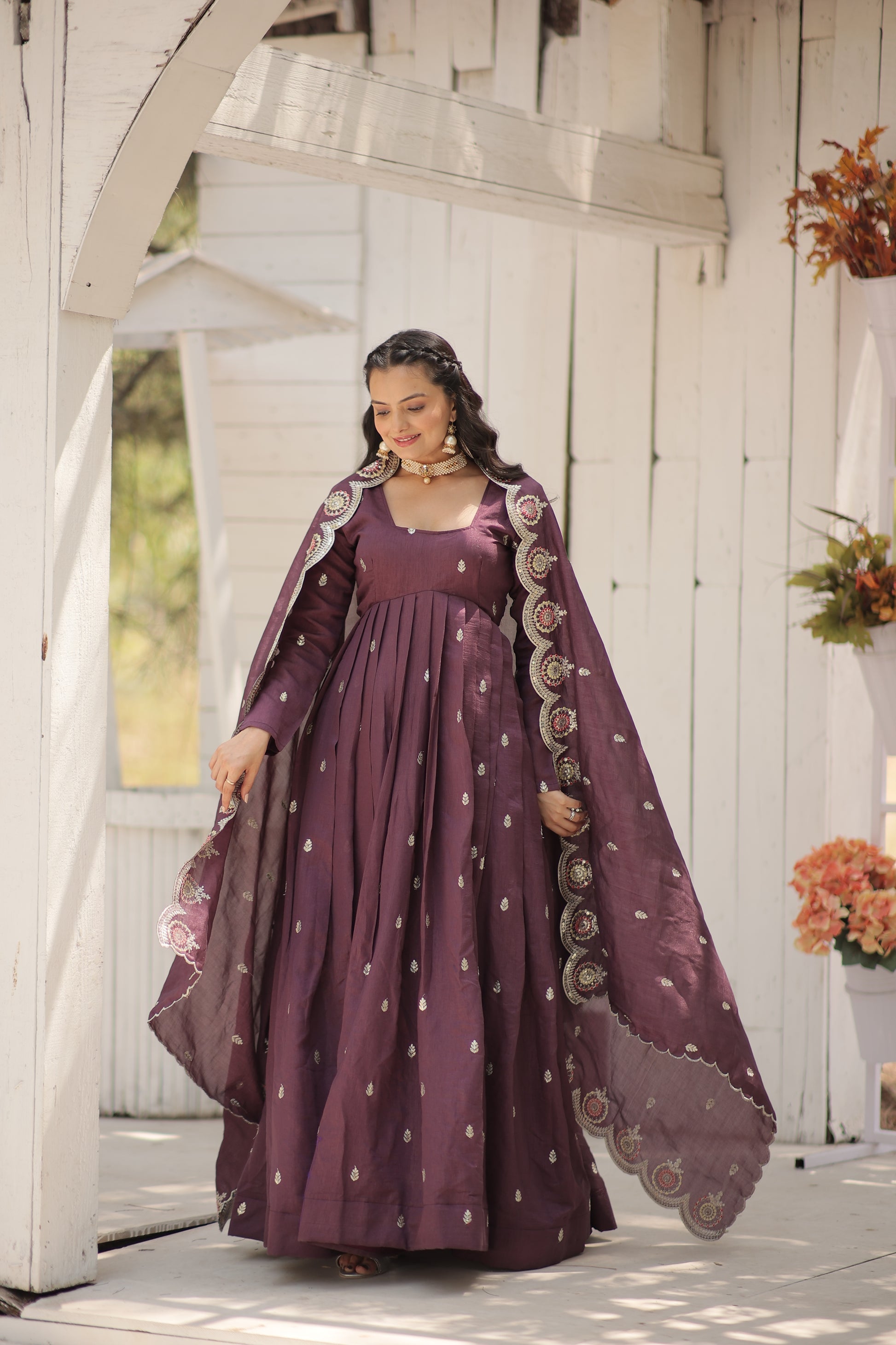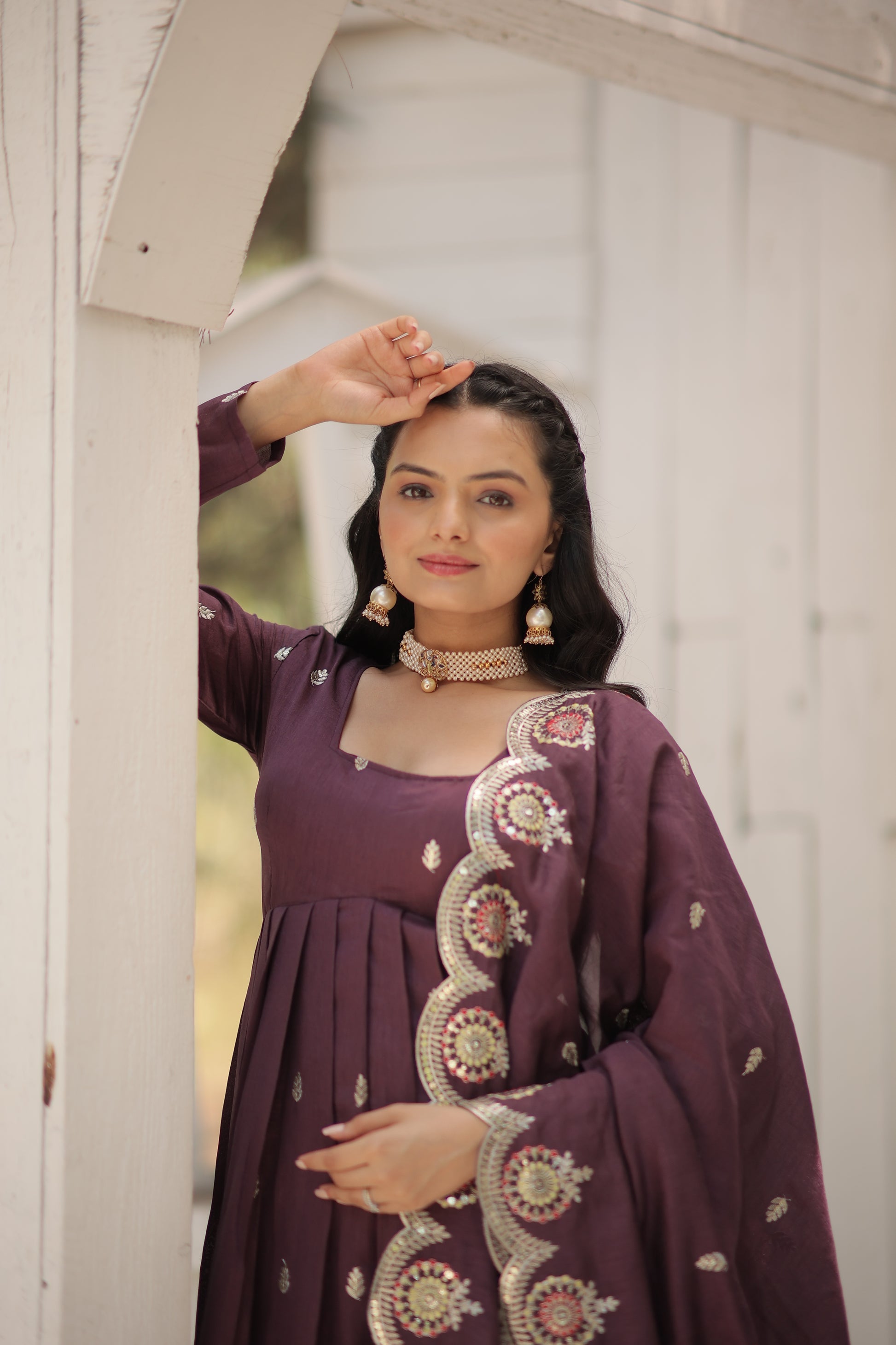 Hritvi Onion Pink Embroidered Anarkali Gown Set
