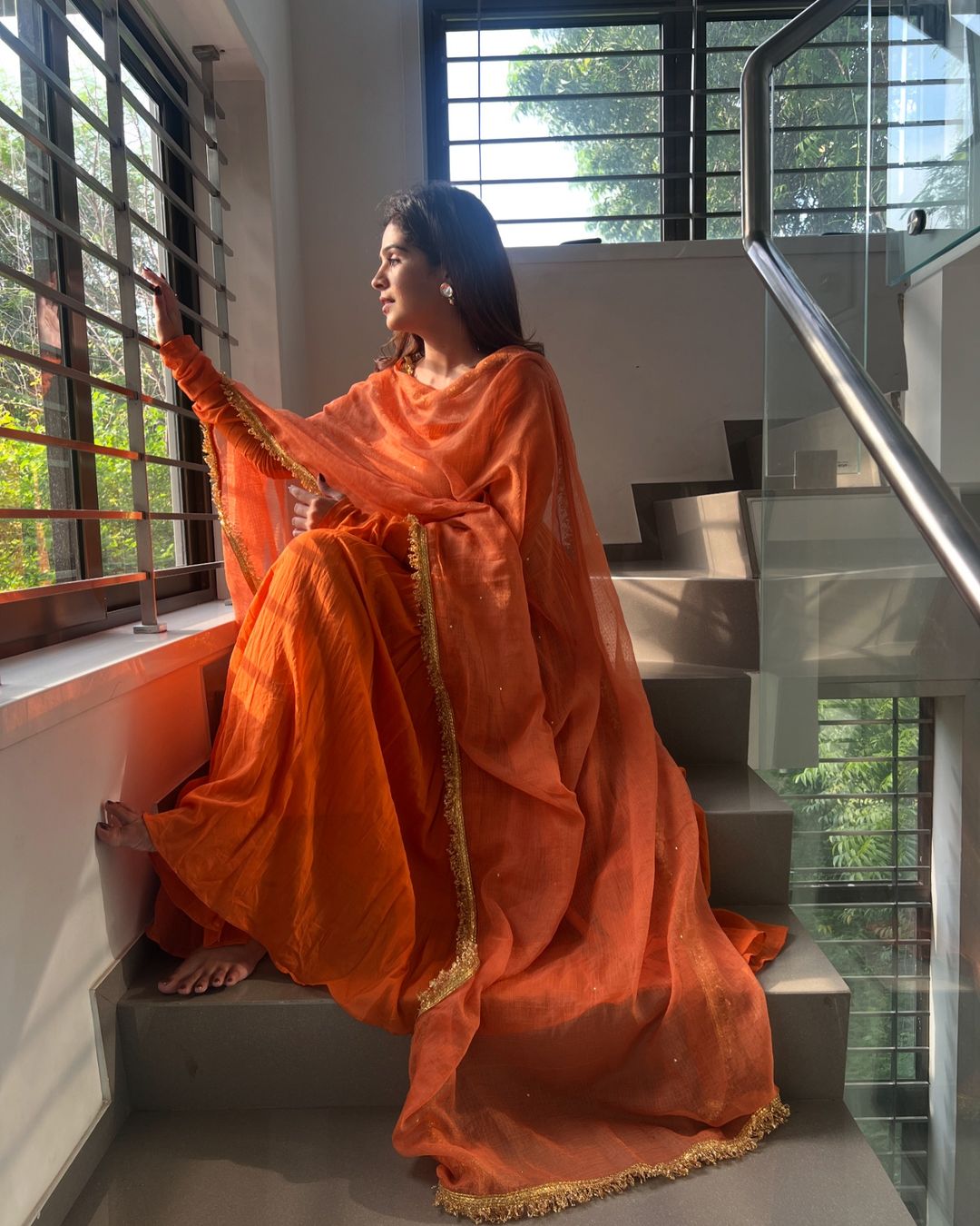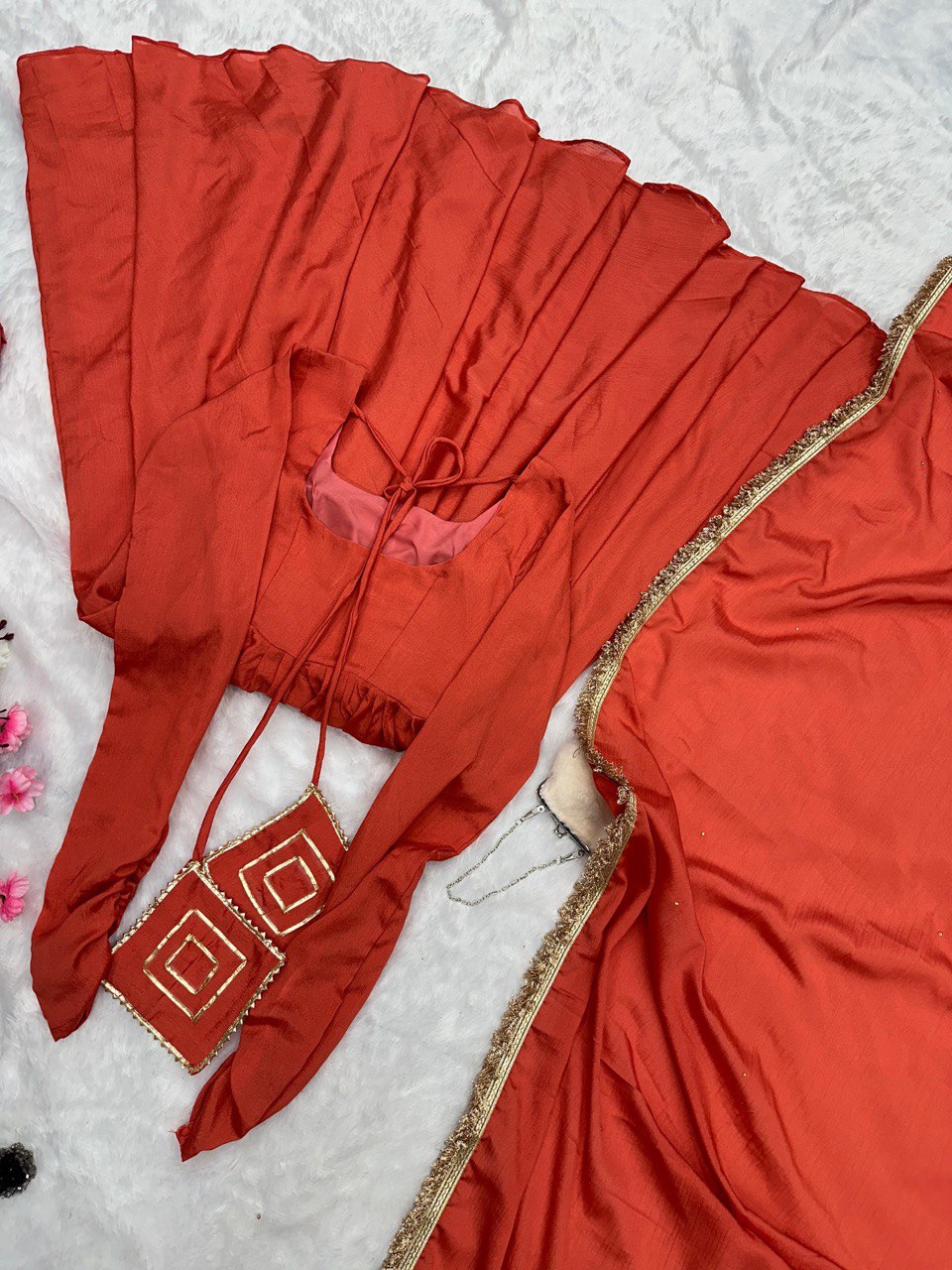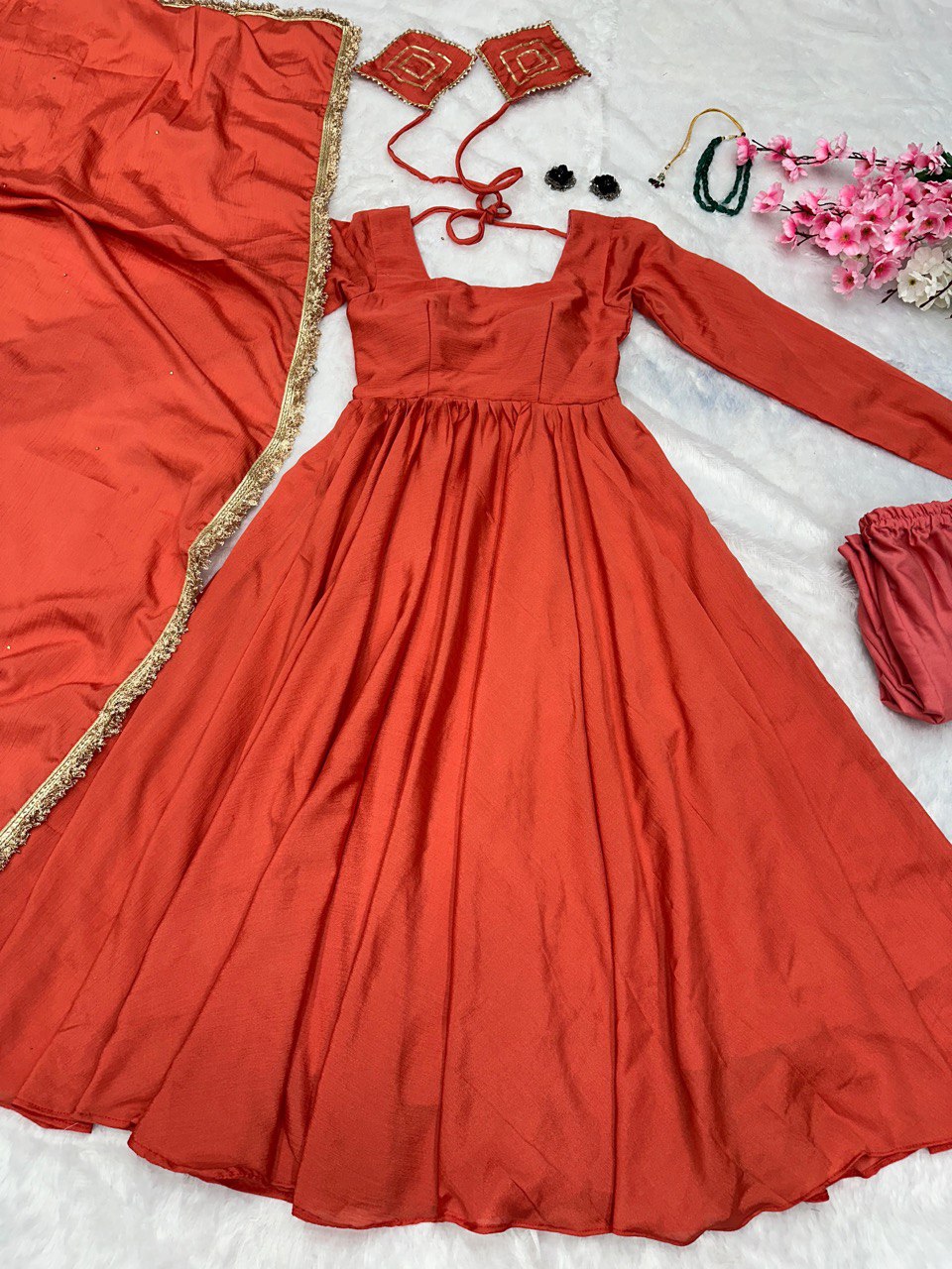 Nivanshi Orange Chinon Silk Anarkali Suit Set